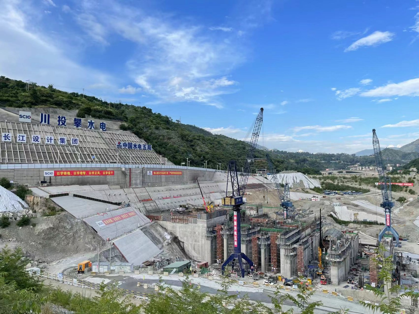 在银江水电站工程建设施工现场,杨洪详细检查了银江水电站二期围堰、大坝及厂房基坑边坡施工,和现场吊装作业、交叉作业、高处作业等安全管理情况,详细询问了银江水电站参建单位施工营地及现场作业人员情况、地质灾害风险隐患管控、重大危险源(液氨)管控、近期水情汛情及防灾减灾预警响应情况,并详细了解了近期工程建设推进、安全环保重点工作开展情况。