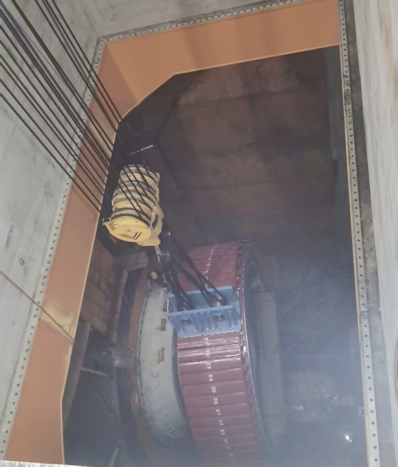 此次吊装的6号机组转子重量达230.5吨,直径8.4米,是名副其实的“钢铁巨环”,其精准就位对施工技术与安全保障提出极高要求。为确保吊装万无一失,所属攀水电公司与参建各方做足了准备,联合开展多轮检查,全面排查桥机、吊具等关键设备,同步组织技术交底和模拟演练,把安全措施落实到每个环节。吊装过程中,这台庞然大物在桥机手的精准操控下平稳起吊、缓缓移动,最终以毫米级精度稳稳落入机坑,与发电机大轴精准对接。全程监测数据显示所有参数均符合设计标准,本次吊装任务圆满完成。
