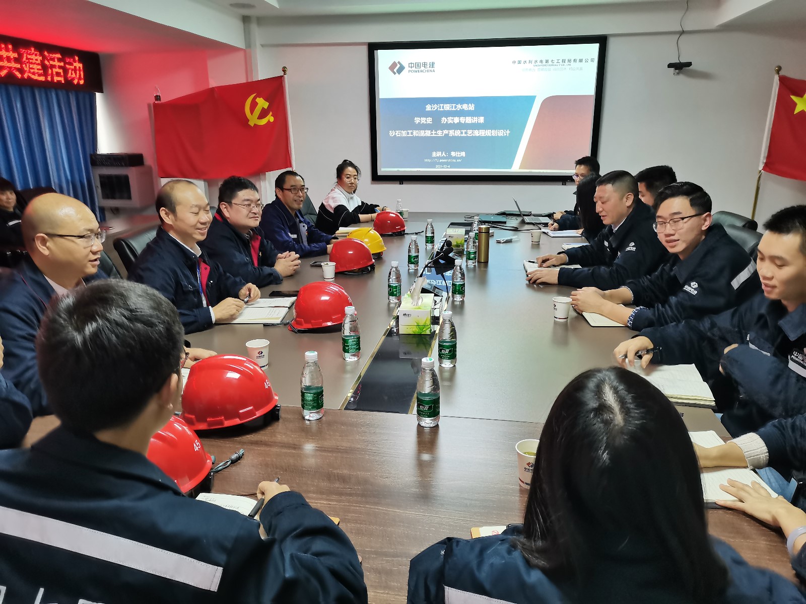 为提升公司部门人员管理水平,结合“学党史、办实事”要求,攀水电公司计划合同部、检测监测联合党支部和水电七局银江项目党支部于2021年12月4日在水电七局项目部组织开展了联建活动。