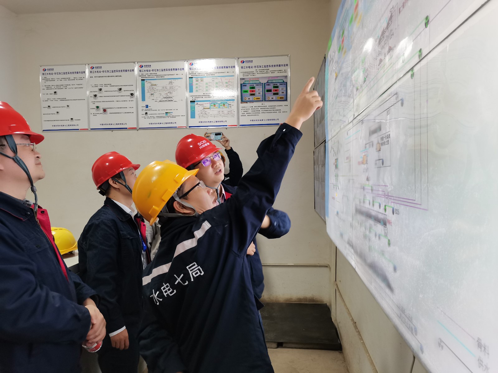 在水电七局项目部会议室,水电七局总工程师韦仕鸿详细介绍了银江水电站砂石加工系统及混凝土生产系统的工艺流程。银江水电站位于主城区,环保要求极高,银江水电站的砂石加工系统和混凝土生产系统的所有设备、皮带机及料仓均为全封闭式,不仅环保而且美观。