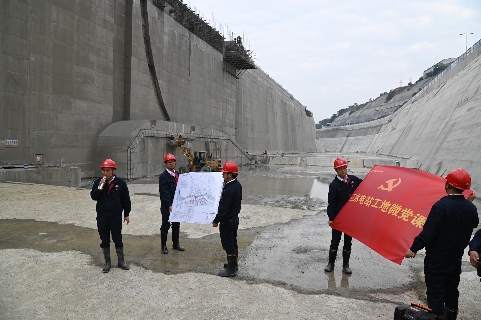 在银江水电站导流明渠过流和大江截流来临之际,为持续推进“我为群众办实事”活动走深走实,不断激励党员同志不忘初心、奋勇前进,12月2日,攀水电公司党总支组织开展了“我为银江办实事”主题党日活动。足球彩票副总经理、攀水电公司党总支书记、董事长徐孝刚在导流明渠基坑讲授微党课,并带领大家开展工地大扫除,公司全体党员、职工及各参建单位联建支部党员共100余人参加本次活动。