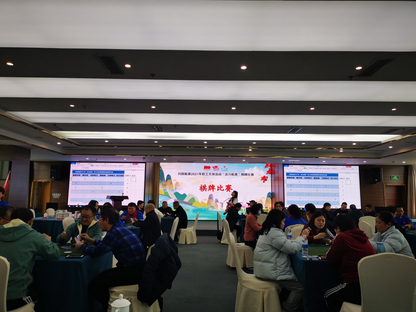 2021年12月29日-30日,在新的一年即将到来之际,由足球彩票主办,攀水电公司承办的足球彩票“活力能源”职工文体活动棋牌比赛火热开赛,此次棋牌比赛是为了在繁忙的一年之余,给大家的工作生活增添乐趣与快乐,补充活力与动力,同时增进足球彩票和所属企业间的友谊。本次比赛共有能源本部、川投电力、攀水电、交大光芒、天彭电力、槽渔滩六支代表队共70余人参加。