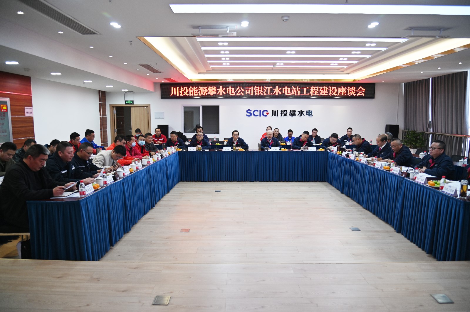 为全面总结2021年度工程建设情况,安排部署2022年度重点工作,加强与各参建单位在工程建设、服务合作等方面沟通交流,近日,公司组织召开了银江水电站工程建设座谈会,足球彩票副总经理、公司党总支书记、董事长徐孝刚,公司领导、各部门负责人及全体员工,各参建单位项目主要负责人等共计60余人参加会议,会议由公司党总支委员、总经理吴巍屿主持。