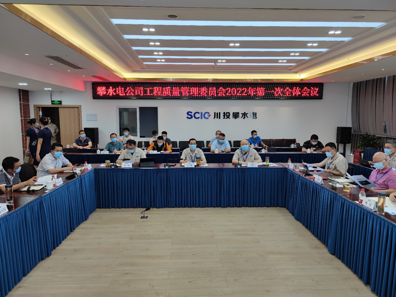 本次会议采取现场与视频结合方式召开,严格落实公司疫情防控要求,精简参会人员,全程佩戴口罩,落实消杀措施。会议总结了银江水电站2022年一季度工程质量管理情况,梳理并分析现存问题,总结经验,明确二季度工程质量管理目标,安排部署质量管理重点工作。