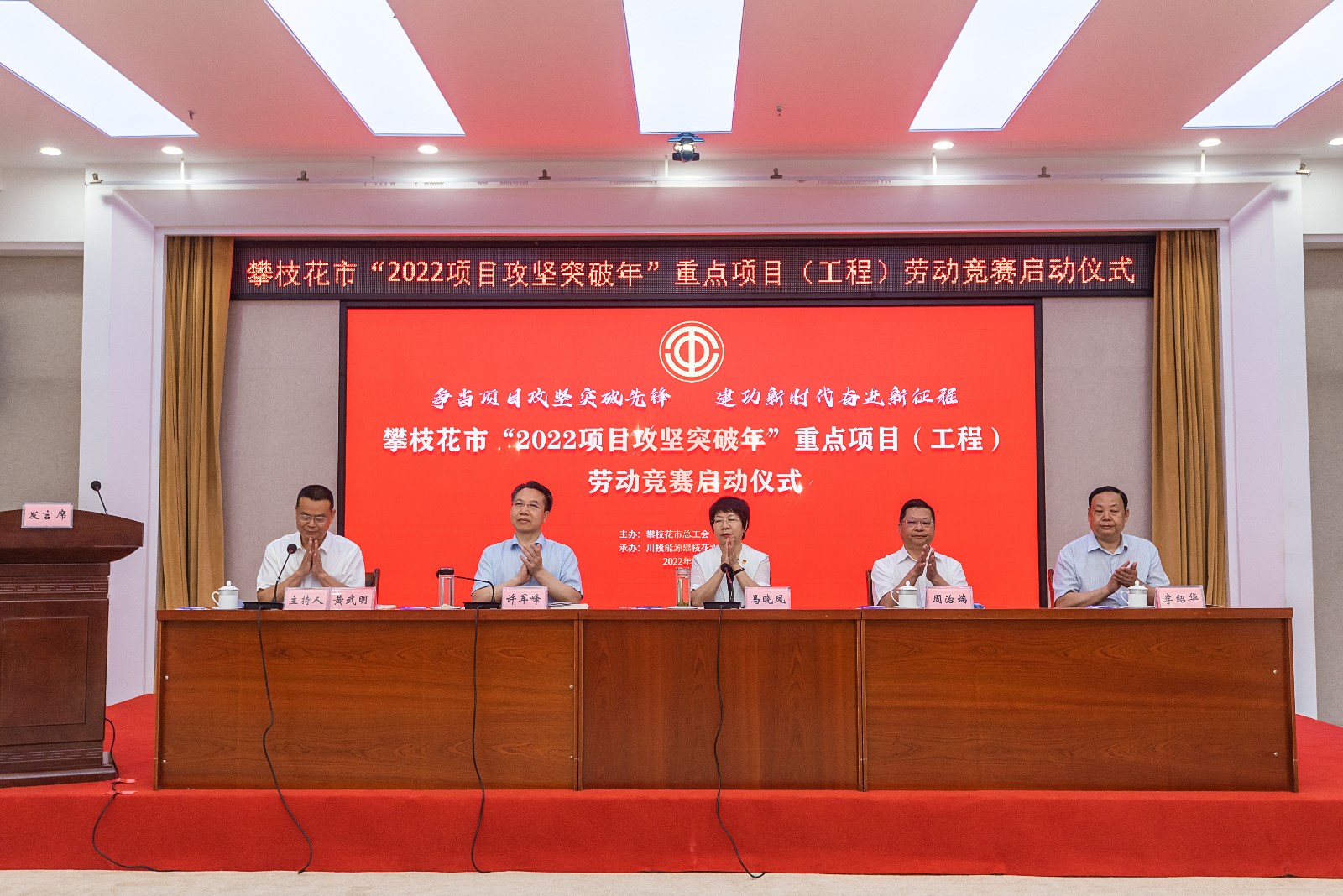 5月11日,由攀枝花市总工会主办、攀水电公司承办的攀枝花市“2022项目攻坚突破年”重点项目(工程)劳动竞赛启动仪式在攀枝花市会展中心举行,攀枝花市委常委、统战部部长、市总工会主席马晓凤出席启动仪式并宣布劳动竞赛正式启动。市人大常委会副主任周治端、副市长许军峰、市政协副主席李绍华出席启动仪式,足球彩票副总经理、攀水电公司党总支书记、董事长徐孝刚代表全市50家重点项目(工程)发出倡议。