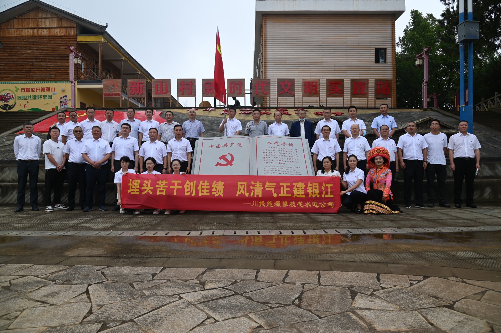 上午10时30分,在攀枝花市党风廉政教育示范点——米易县新山傈僳族乡新山村,足球彩票副总经理、攀水电公司党总支书记、董事长徐孝刚以“埋头苦干创佳绩,风清气正建银江”为题,为大家讲授了一堂廉洁党课。