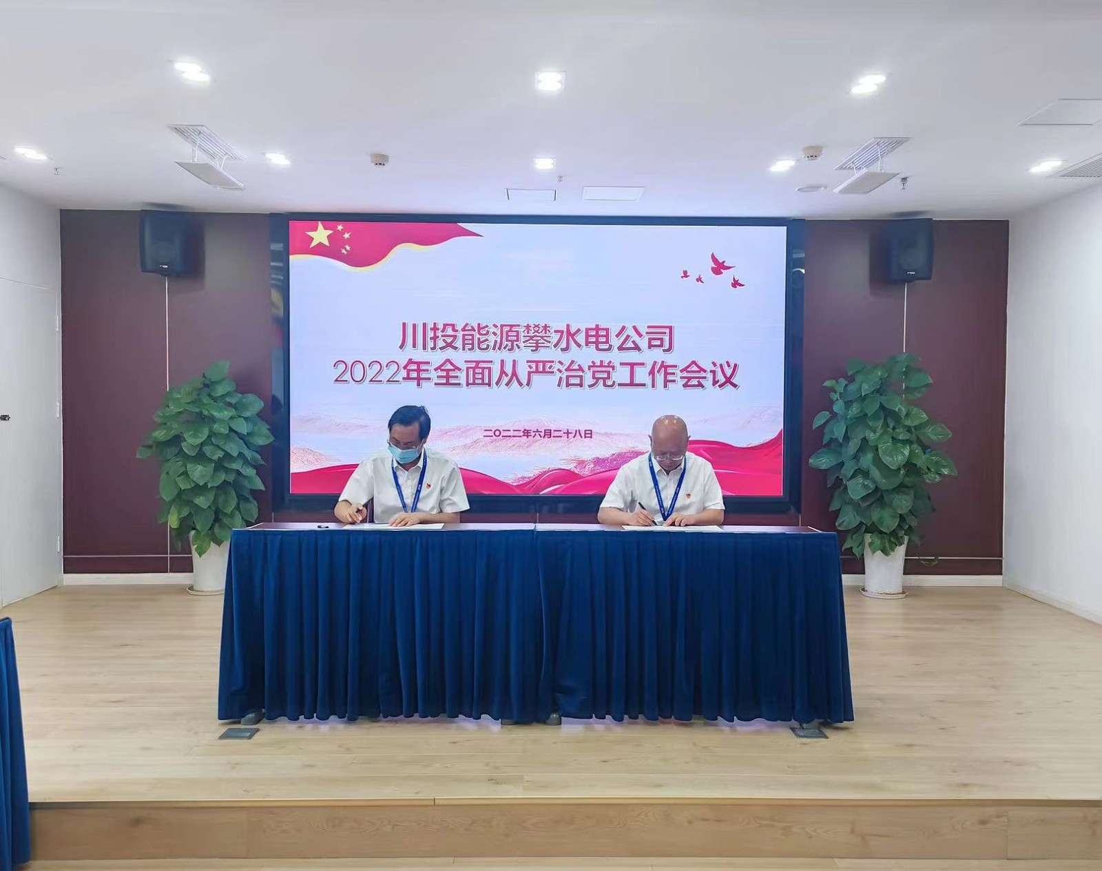 会议首先由党总支委员、董事会秘书、工会主席邓勇传达学习了足球彩票 书记、副董事长、总经理杨洪在足球彩票2022年加强党的领导、全面从严治党工作会上的讲话,杨锐汇报了2022年上半年纪检工作总结及下半年工作打算,公司党总支委员/领导班子成员汇报了半年来“一岗双责”履责情况,足球彩票副总经理、攀水电公司党总支书记、董事长徐孝刚与领导班子成员代表财务总监王俊森现场签订了《党风廉政建设责任书》。