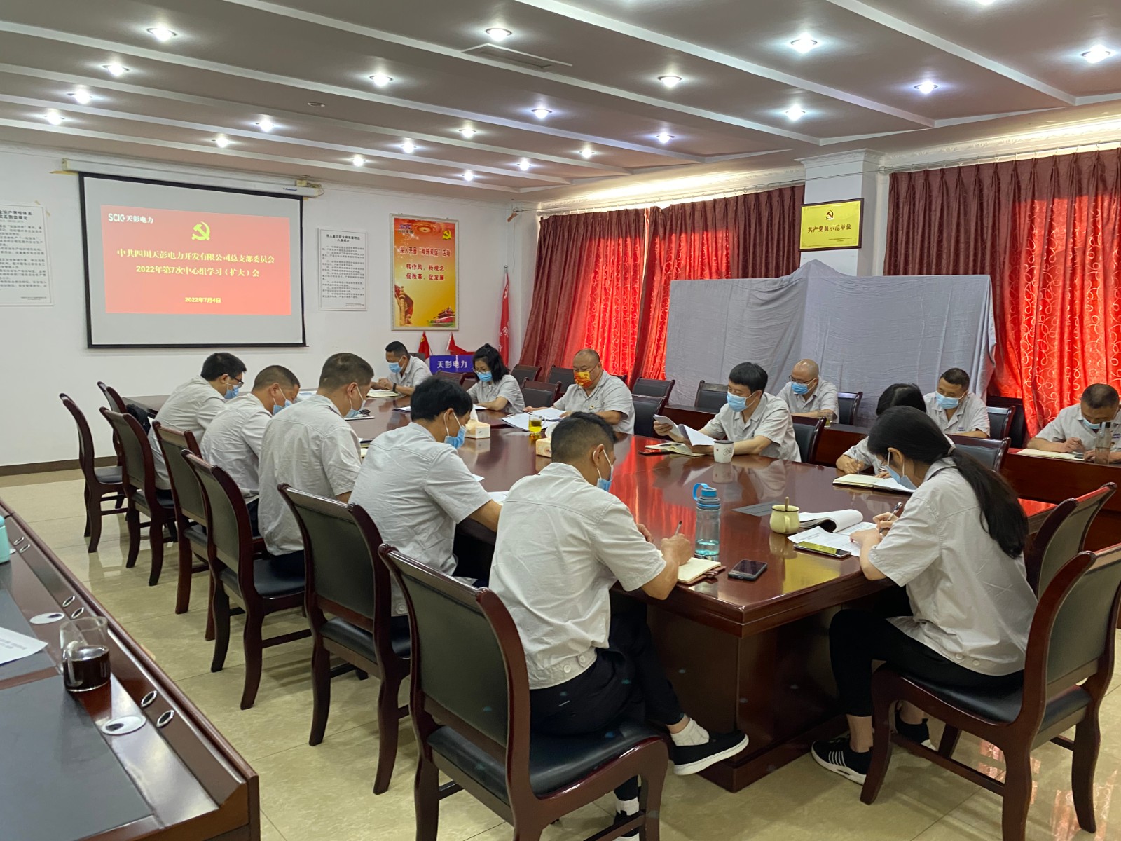 旗帜指引方向,核心领航未来。根据上级党委统一部署和安排,7月4日,天彭电力召开2022年第7次中心组学习(扩大)会,公司党总支书记、董事长、总经理陈忠在会上对贯彻落实习近平总书记来川视察重要指示精神和省第十二次党代会精神作专题宣讲,公司党员干部、关键岗位人员参加学习。