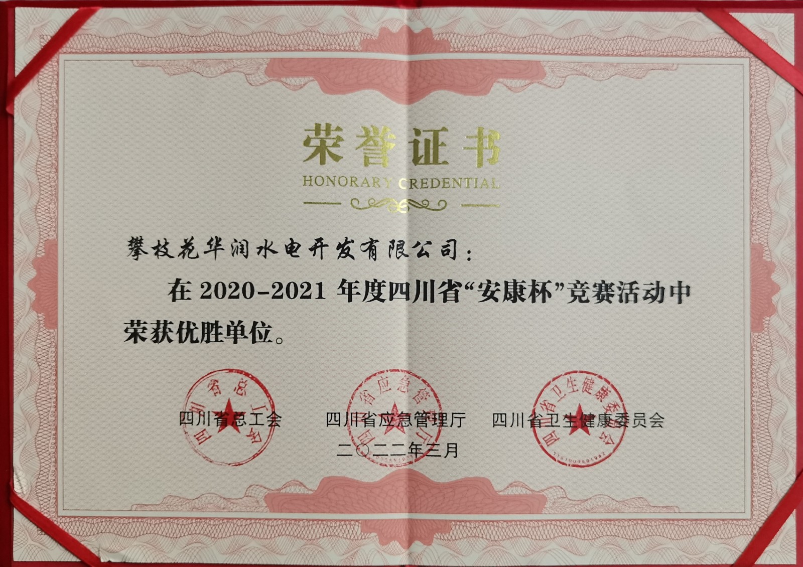 近日,攀水电公司荣获了四川省总工会、四川省应急管理厅、四川省卫健委联合颁发的四川省“安康杯”竞赛活动优胜单位光荣称号。在川投集团、足球彩票正确领导下,攀水电公司深入贯彻习近平总书记关于安全生产的重要论述,全面落实中央、省、市安全生产工作部署,积极组织公司及参建单位开展“安康杯”竞赛活动。经过东区、攀枝花市、四川省的层层申报、评选,公司在2020-2021年度四川省“安康杯”竞赛活动中荣获优胜单位,这不仅是攀水电公司获得的首个省级荣誉,也是全体银江建设者的共同荣誉。