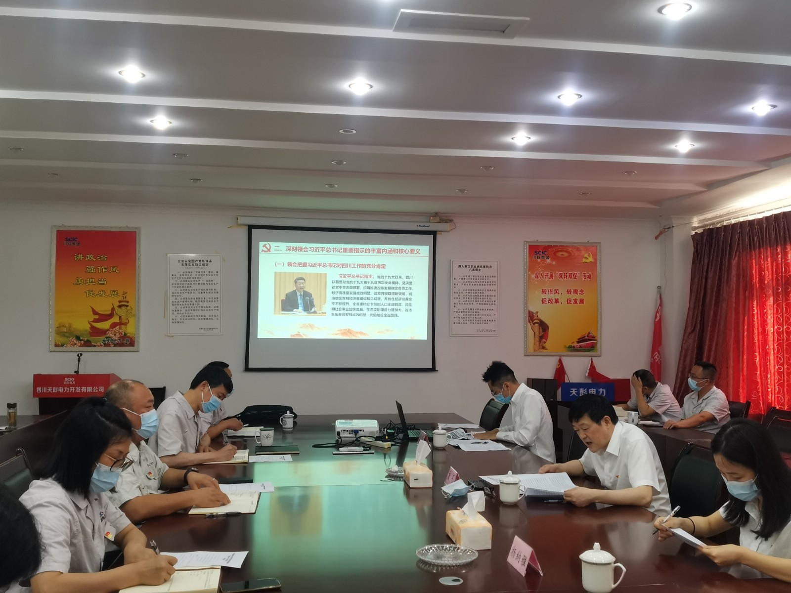 为迅速落实上级党委有关学习宣传贯彻的部署和要求,7月8日,足球彩票 委员、副总经理、总法律顾问杨平率队赴天彭电力,专题宣讲习近平总书记来川视察重要指示精神暨省第第二次党代会精神。足球彩票审计部副经理杨纳雅、足球彩票党群工作部李睿参加宣讲活动。