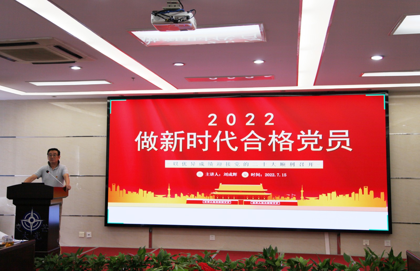 最后,刘成辉以《做新时代合格党员——以优异成绩迎接党的二十大顺利召开》为题,为与会人员讲授了一堂生动的专题党课。他要求,公司全体党员领导干部要带头旗帜鲜明讲政治,坚决贯彻党中央决策部署,弘扬伟大建党精神,以饱满的热情、昂扬的斗志、坚定的信念、优异的成绩迎接党的二十大召开。