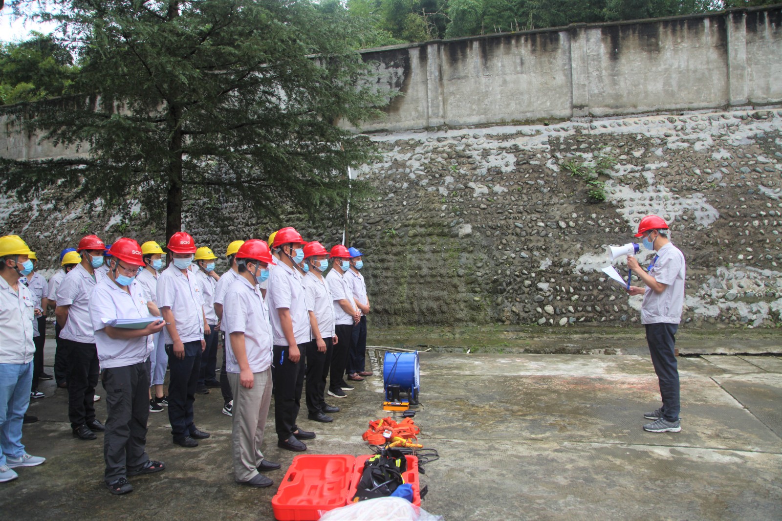 为汲取今年以来全省先后发生7起有限空间作业生产安全事故的深刻教训,严格贯彻落实省安委会关于做好有限空间作业安全防范工作的相关要求部署,抓牢抓实各关键环节和安全防范措施,8月29日,天彭电力结合公司实际组织开展了年度有限空间作业中毒窒息事故现场处置演练,公司领导、各部门、车间相关人员参加演练。