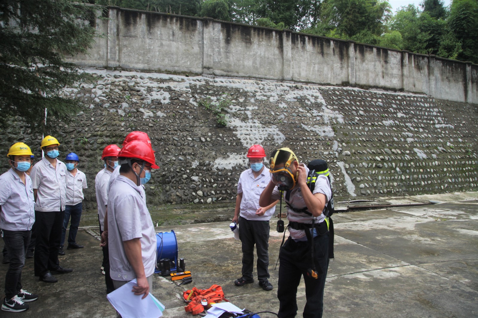 公司应急办公室向大家普及了应急厅《有限空间作业安全指导手册》及公司《有限空间作业安全管理办法》《危险作业安全管理办法》要点,逐一讲解演示了轴流风机、安全带、照明灯、气体检测仪、正压式空气呼吸器、对讲机等有限空间作业安全防护设备设施使用方法,并对有限空间作业“先通风、再检测、后作业”的原则、审批流程和各项现场安全措施作了进一步强调。在现场处置演练过程中,学习掌握了演练要领的各组人员严守职责、行动迅速,在确保自身安全的前提下以流畅的配合完成了应急处置和救援流程,并安全撤离危险区域,圆满达到了预防员工进入有限空间作业中毒窒息事故发生,提高员工在事故突发状态下快速、高效、有效的应急处理能力,最大限度保护员工生命安全的演练目的。