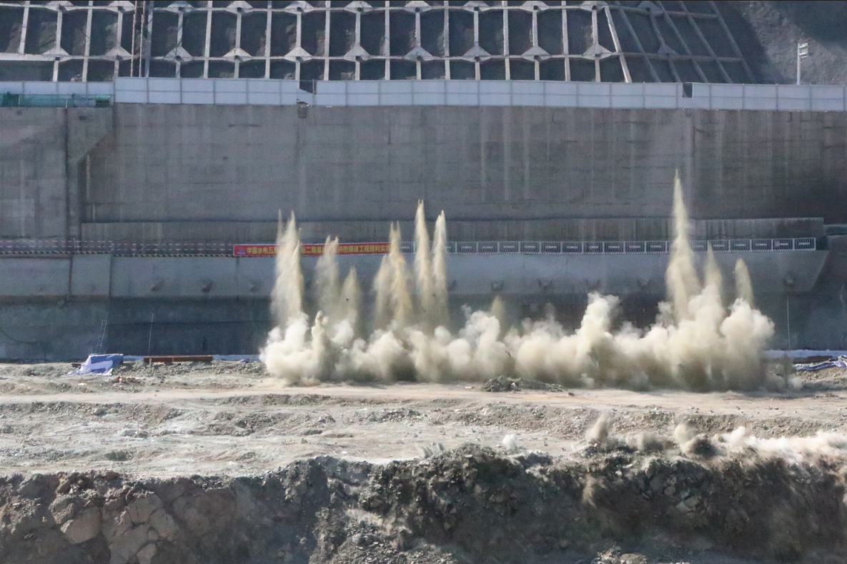 银江水电站位于攀枝花市主城区,二期基坑开挖施工外围边界条件复杂,左右岸各存在一条出入攀枝花市交通主干道(国道),此外,成昆铁路渡口支线紧邻左岸边坡及二期基坑爆破区,爆破施工属涉铁工程,爆破前需要办理相关手续。公司先后多次组织参建单位召开专题会议研究涉铁爆破事宜,施工单位积极落实审批备案手续,多次往返于成都和攀枝花之间,历经曲折,终于在7月取得了铁路、公安等主管部门批准,8月13日16点30分,随着一声巨响,二期基坑土石方开挖成功迎来“首爆”,主体工程建设正式迈入“快车道”。