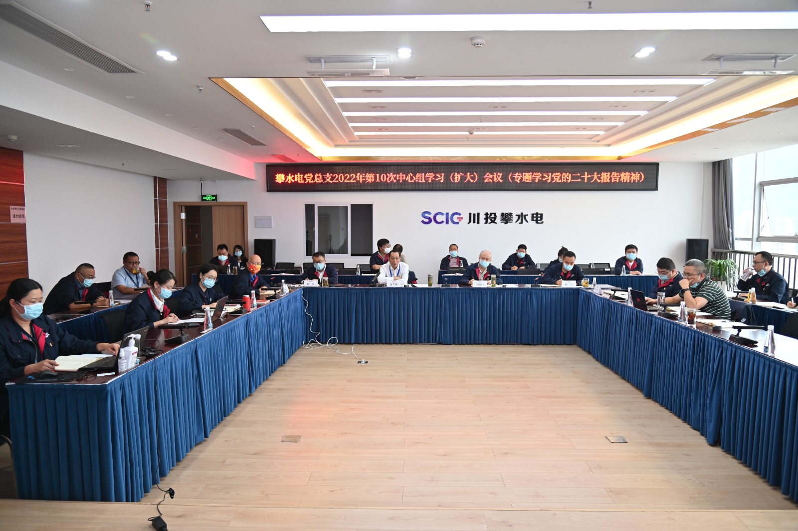 10月22日上午,在党的二十大胜利闭幕之际,攀水电公司党总支在2620会议室召开了2022年第10次中心组(扩大)学习会议,专题学习习近平总书记在中国共产党第二十次全国代表大会上的报告。会议由足球彩票副总经理、攀水电公司党总支书记、董事长、攀新能源公司董事长徐孝刚主持,公司党总支中心组成员、联建支部书记、其他党员、统战对象、入党积极分子共40余人参加学习。
