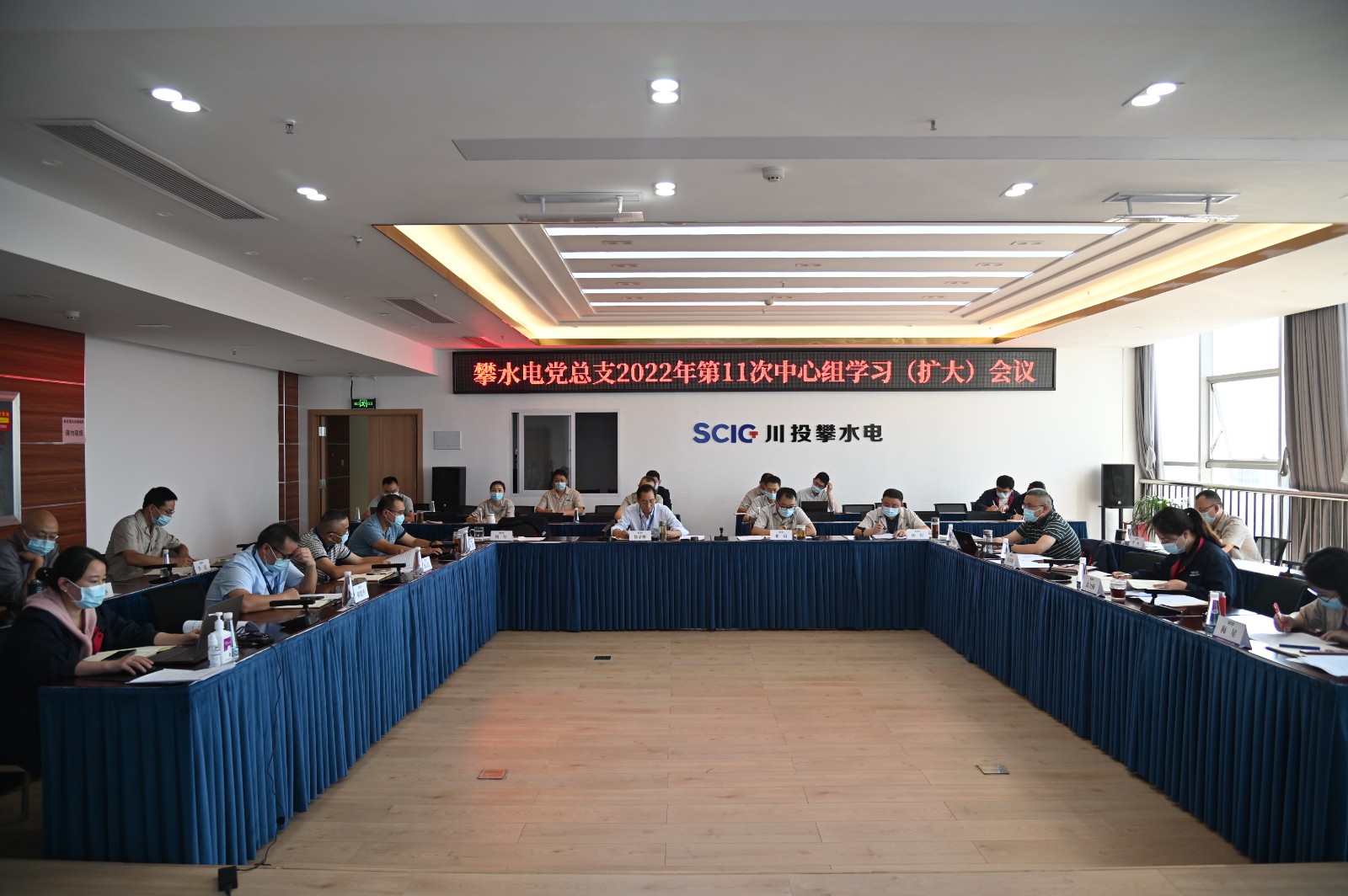 近日,在全国上下掀起学习宣传贯彻党的二十大精神热潮之际,攀水电公司党总支在2620会议室召开了2022年第11次中心组学习(扩大)会议。本次学习主要包括第一议题学习、党费专题、党史学习教育、安全环保、廉政警示教育五个部分。会议由足球彩票副总经理、攀水电公司党总支书记、董事长、攀新能源公司董事长徐孝刚主持,公司党总支中心组成员、其他党员、 统战对象、入党积极分子共40余人参加学习。