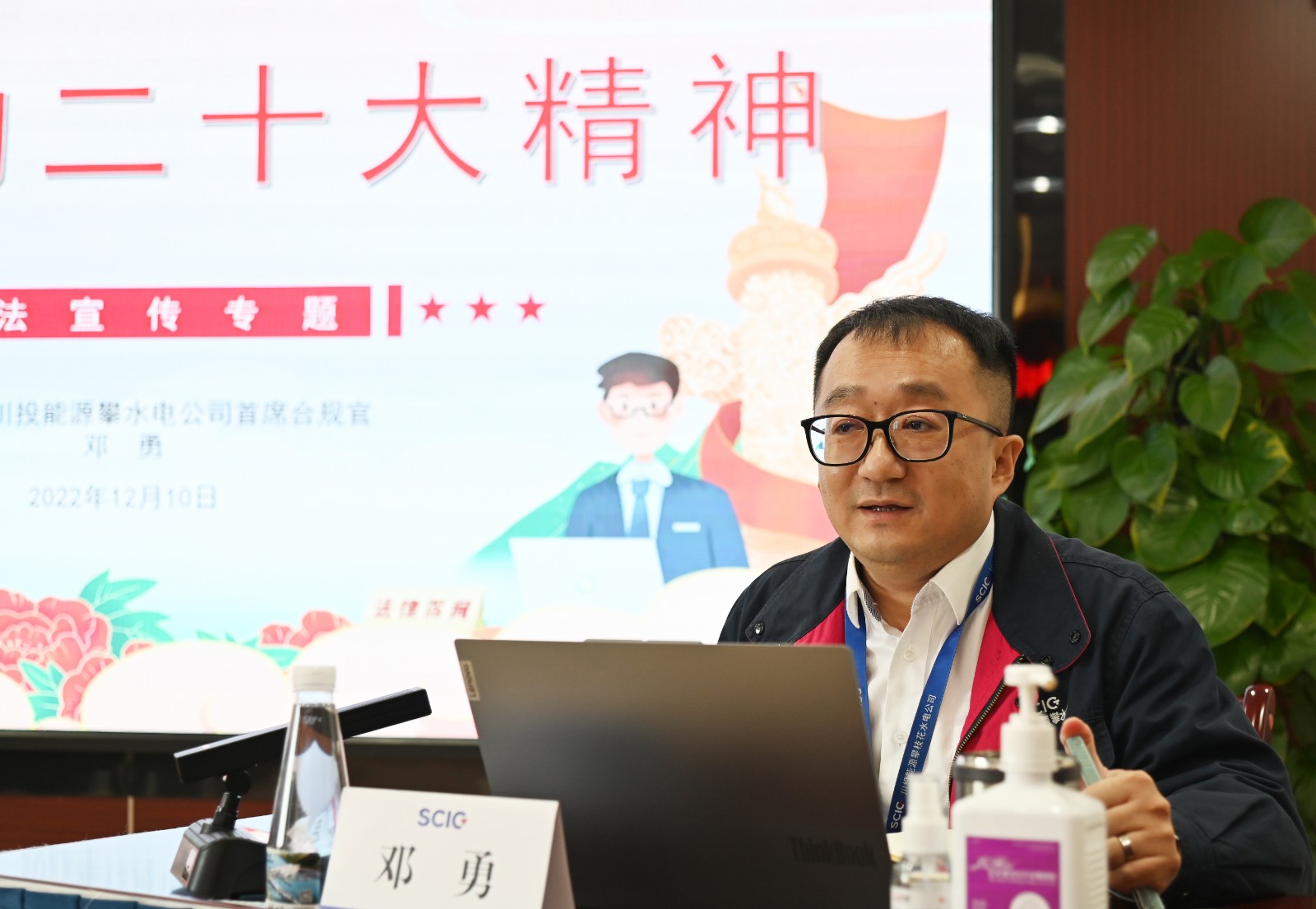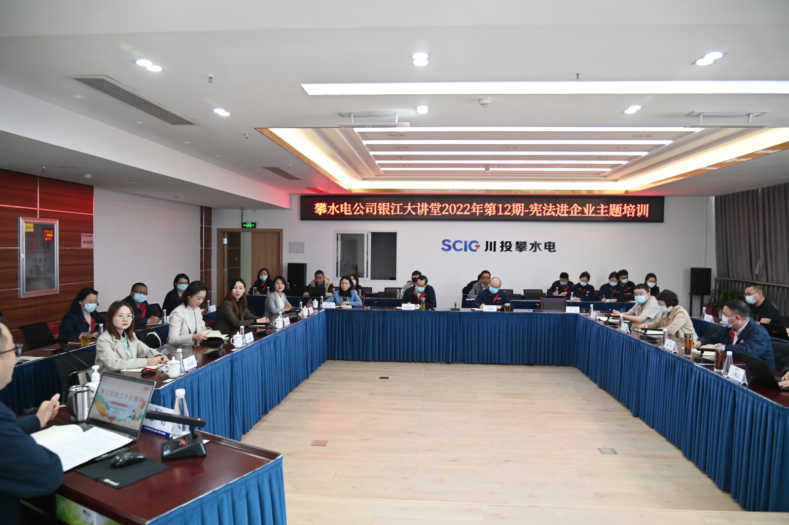 为深入学习宣传党的二十大精神和习近平法治思想,推动公司全员学习宣传贯彻党的二十大精神,按照省国资委、川投集团、足球彩票《关于组织开展2022年宪法进企业主题活动的通知》和“宪法宣传周”活动要求,2022年12月10日,攀水电公司组织开展了宪法进企业主题培训,足球彩票副总经理、攀水电公司党总支书记、董事长、攀新能源公司董事长徐孝刚,攀水电公司党总支副书记、总经理吴巍屿,四川蜀攀律师事务所副主任赵艳出席会议,攀水电公司其他领导及员工共计30余人参加培训。