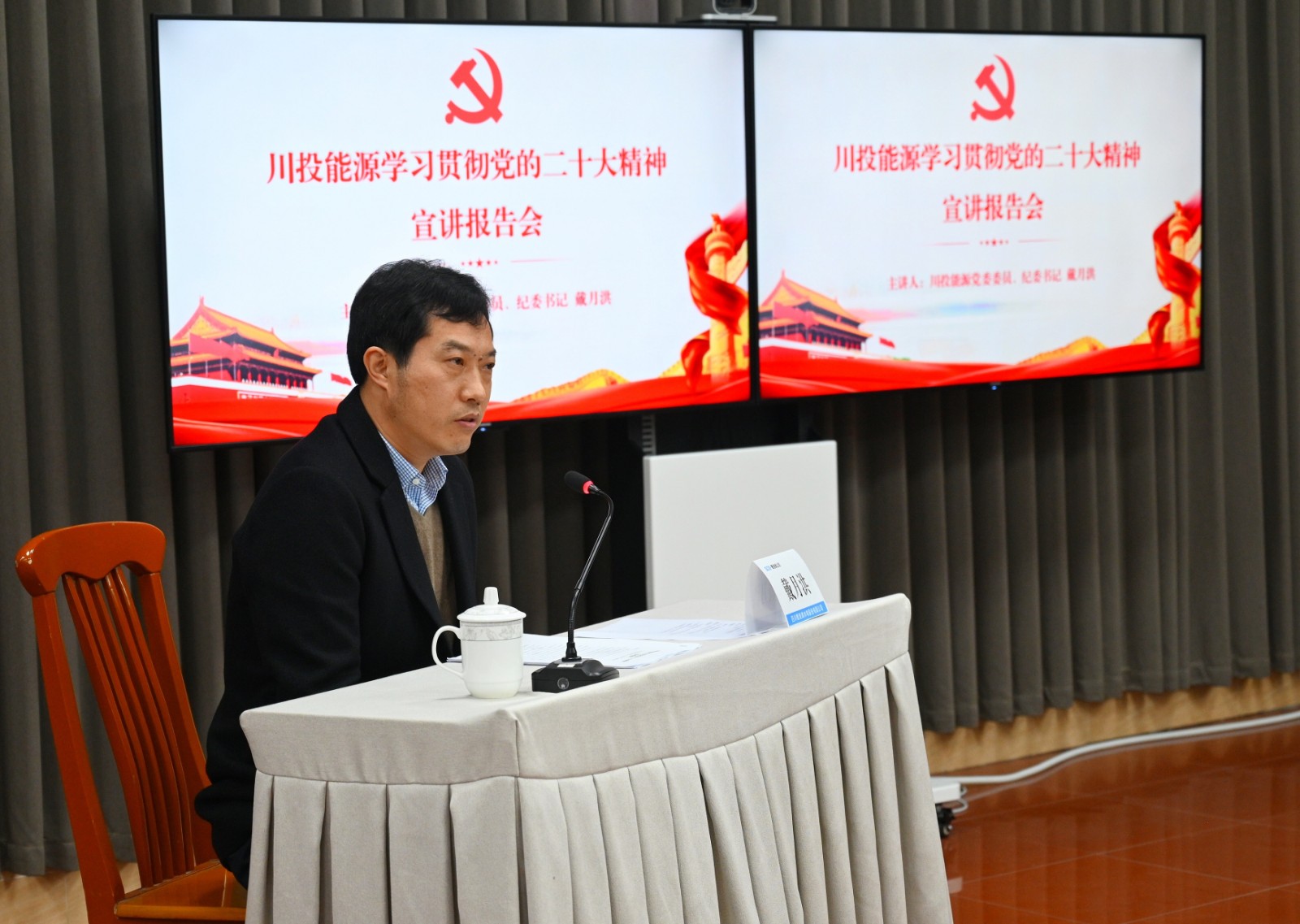 为深入学习宣传贯彻党的二十大精神,坚定推动党的二十大决策部署在公司落地见效,12月12日上午,足球彩票 委员、纪委书记戴月洪到槽渔滩公司专题宣讲党的二十大精神,槽渔滩公司党委副书记张启林主持会议。