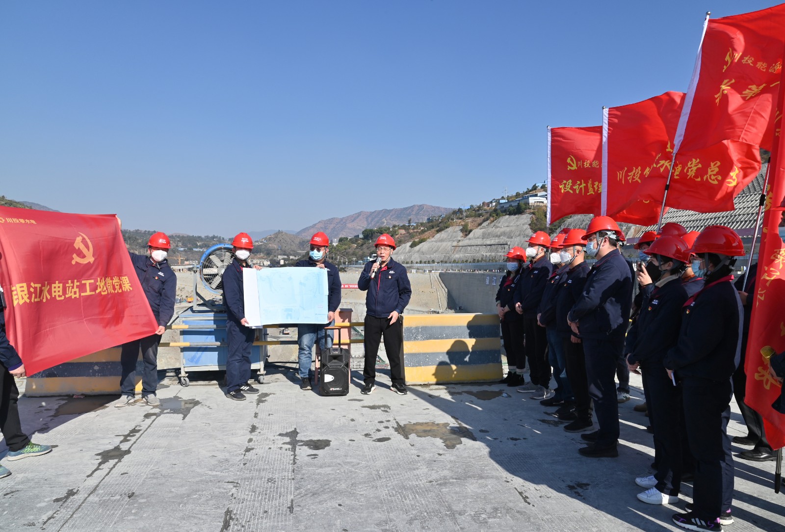 1月7日下午,在新春到来之际,攀水电公司党总支组织在银江水电站施工现场开展了1月份主题党日活动,机关第一党支部、机关第二党支部及各联建支部党员、志愿者等30余人参加了本次活动。足球彩票副总经理、攀水电公司党总支书记、董事长、攀新能源公司董事长徐孝刚参加本次活动并讲授了一堂别开生面的工地党课,公司其余领导均以普通党员身份参加了本次活动。