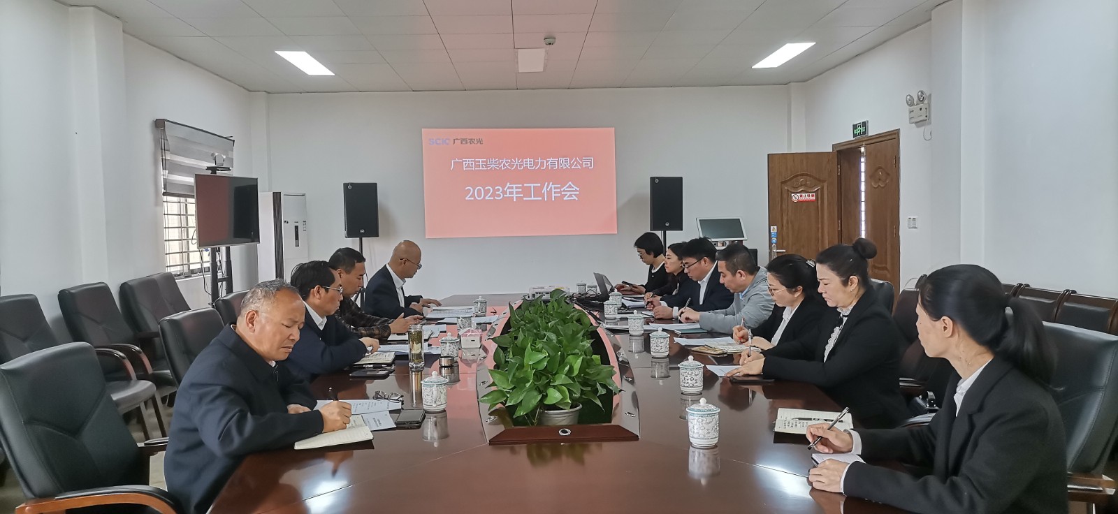 随后,徐孝刚一行在桂平光伏电站升压站二楼会议室召开了广西农光公司2023年工作会,会议由攀新能源公司公司、广西农光公司财务总监王俊森主持,公司全体员工(兼职)、运维单位代表参加会议。会议学习传达了川投集团、足球彩票、攀新能源公司2023年工作会精神;覃凤荏作了广西农光公司《2022年工作总结及2023年工作计划》的报告,重点汇报了2022年度主要指标完成情况、主要工作举措及成效、存在的问题和困难以及2023年工作打算等;王俊森代表公司领导班子作廉洁从业公开承诺;公司主要领导分别与部门代表签订了2023年《“双廉”责任书》《部门目标责任书》。