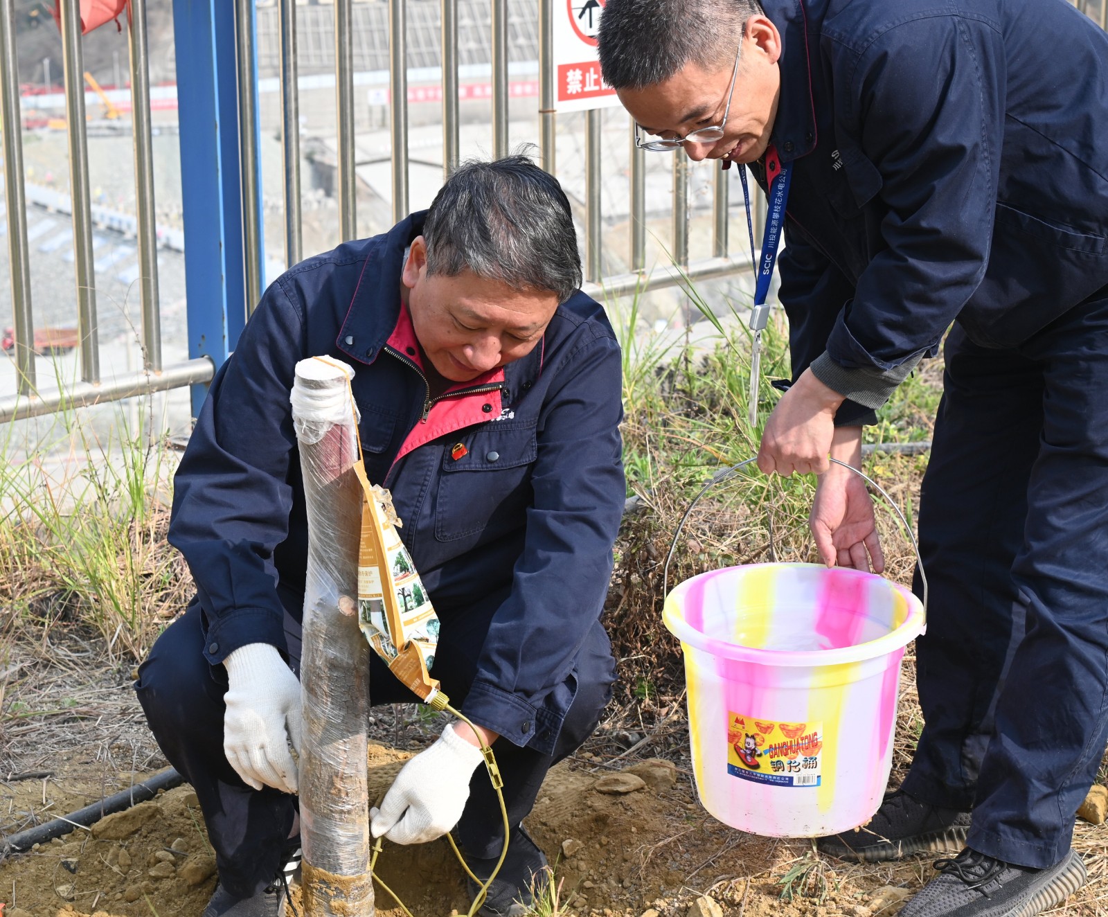 3月12日上午,在第45个植树节之际,攀水电公司为贯彻落实党的二十大精神和习近平生态文明思想、践行“绿水青山就是金山银山”的理念,公司党总支与金河村党委在银江水电站“七色阳光大党建”宣传阵地开展了党建共建植树活动。攀水电机关支部全体党员、工会小组会员,各联建支部党员,金河村党委党员代表共计50余人参加。活动由公司党总支副书记、董事会秘书、工会主席邓勇主持。