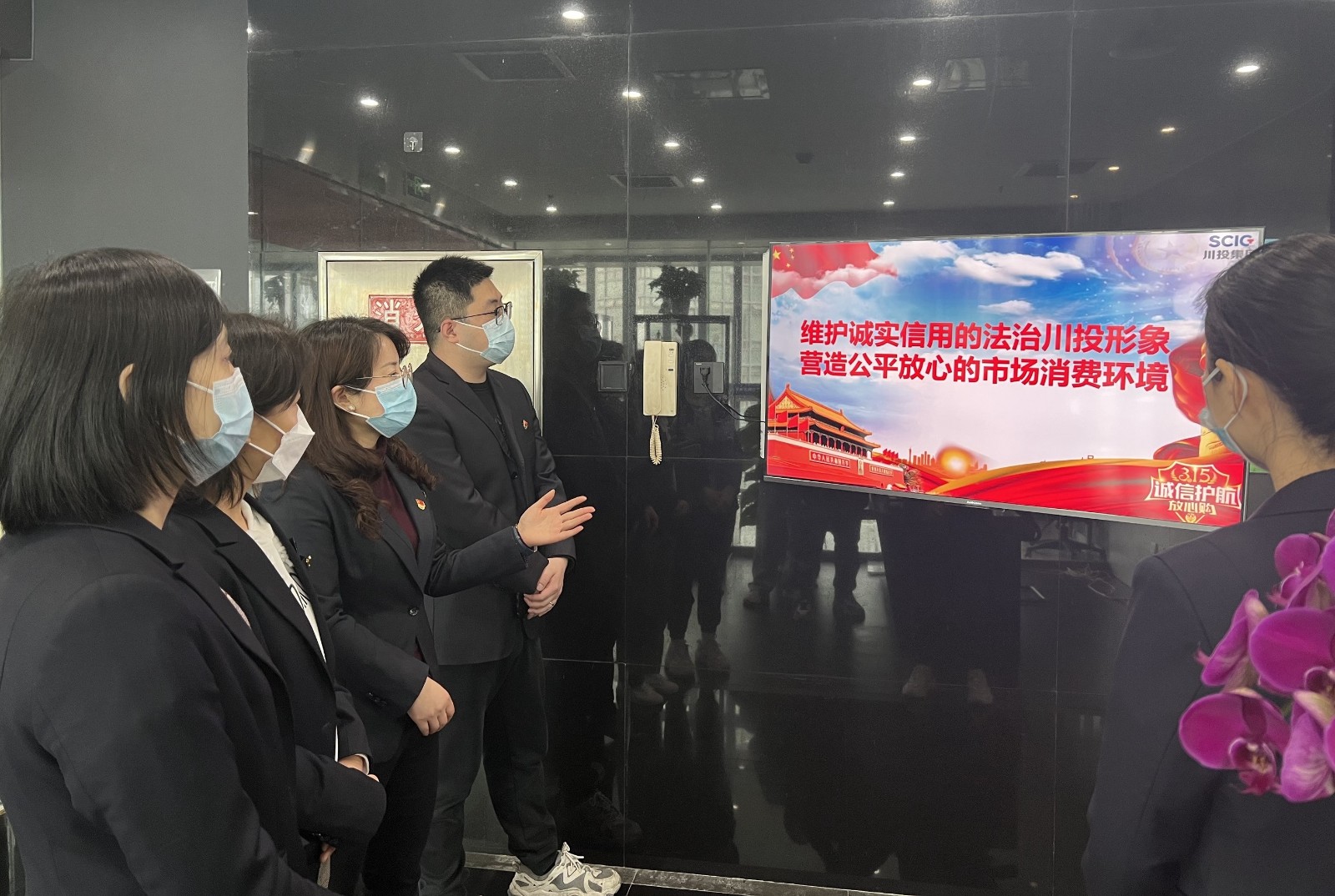 为做好本次普法宣传,公司审计法务部特意向职工普及《消费者权益保护法》条例,精心收集整理下发与大家生活中息息相关的预付式消费和虚假宣传两个典型案例,并通过线下+网络、电子屏幕及公示栏等多种方式,有效载体宣传相关法治标语,让广大职工在一抬头一转眼一动脚间品鉴学习、明鉴是非、悦鉴美好。