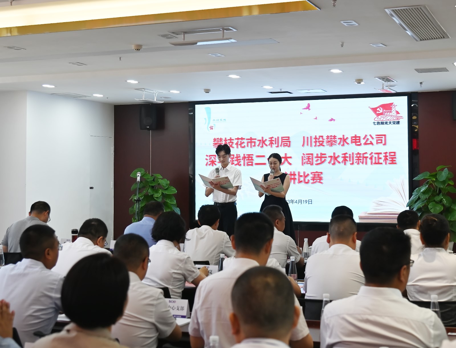 为全面贯彻党的二十大精神,扎实开展学习贯彻习近平新时代中国特色社会主义思想主题教育,在攀水电党总支开展主题教育领导干部读书班期间,为丰富学习形式,营造浓厚学习氛围,近日,攀水电公司与攀枝花市水利局共同举办了“深学践悟二十大、阔步水利新征程”深化“水润花城”党建品牌建设暨政企党组织共建活动,开展征文和演讲比赛。攀枝花市直机关工委常务副书记鲜明,攀枝花市水利局党组成员、副局长林兆东,党组成员、机关党委书记胡嘉,足球彩票副总经理、攀水电公司党总支书记、董事长、攀新能源董事长徐孝刚及读书班成员参加此次活动并担任评委。