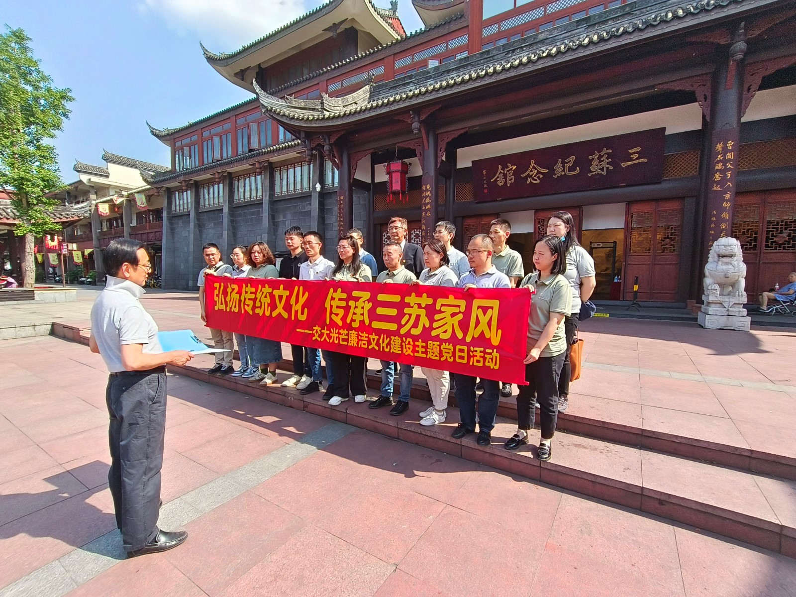为深入学习贯彻习近平总书记关于注重家庭家教家风建设的重要论述和党的二十大精神,大力弘扬和传承优秀传统文化,4月27日,交大光芒党总支组织经营班子成员、中层管理人员、关键岗位人员赴三苏祠开展廉洁文化建设主题党日活动。