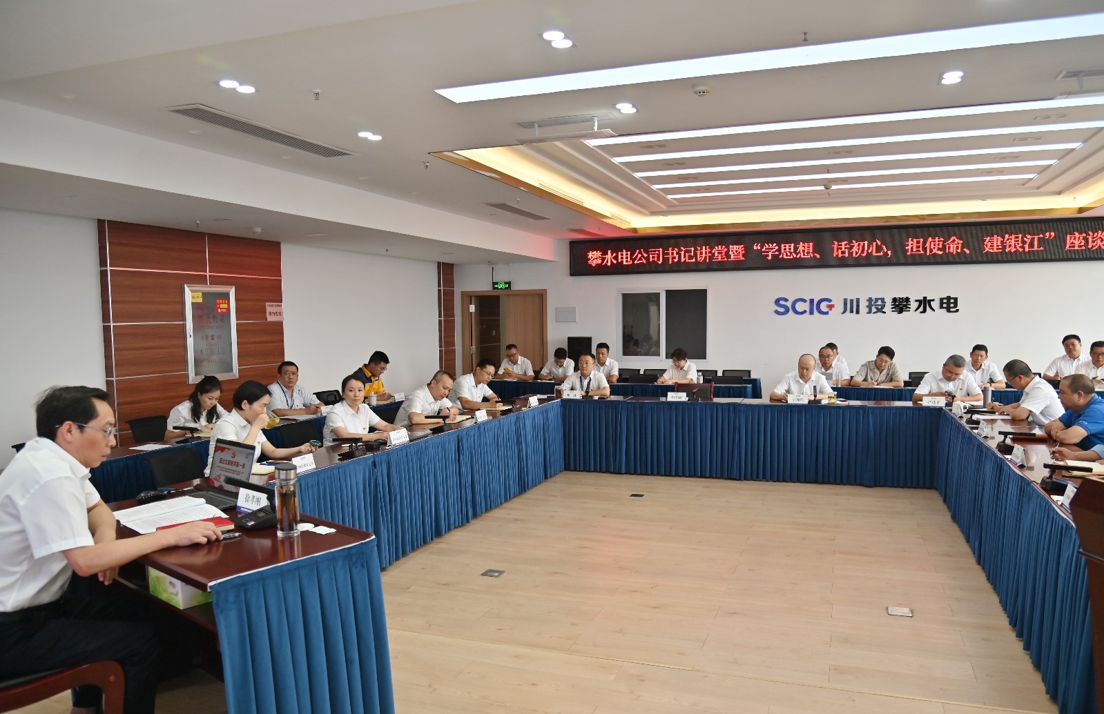 为扎实推进学习贯彻习近平新时代中国特色社会主义思想主题教育走深走实,以思想伟力凝聚起干事创业的强大动力,7月8日,攀水电党总支组织开展书记讲堂暨“学思想、话初心,担使命、建银江”座谈会,由足球彩票副总经理、攀水电党总支书记、董事长徐孝刚讲授专题党课,公司全体党员、非党中干、统战对象、青年职工,联建支部书记、党员代表共计40余人参加。