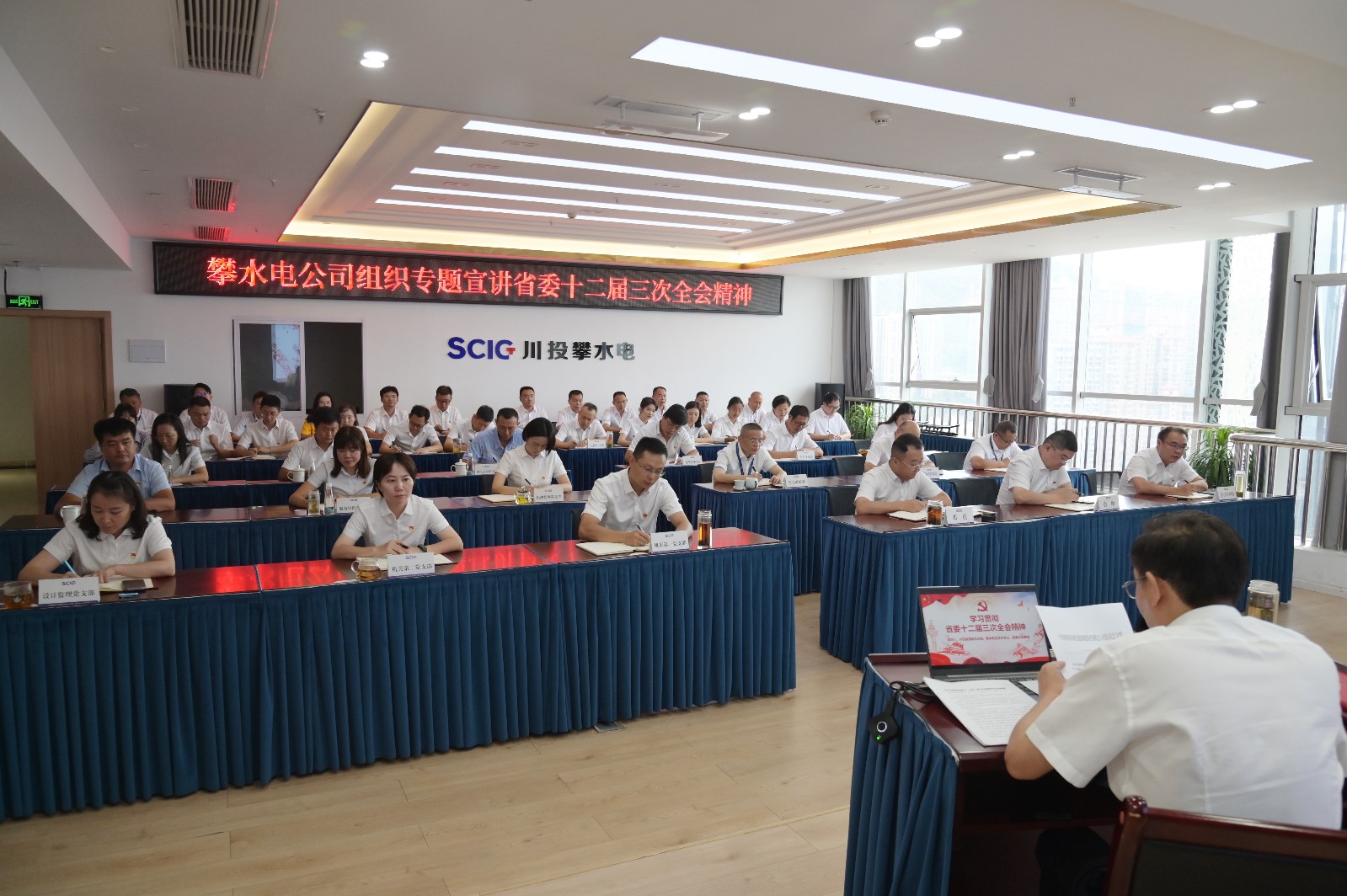 宣讲会上,徐孝刚传达了省国资委党委、川投集团党委和足球彩票 关于贯彻落实省委十二届三次全会精神的意见和要求,从充分认识省委全会的重大意义、深入学习领会省委全会精神、推动省委全会决策部署在川投集团落地见效、推动省委全会决策部署在攀水电公司及银江水电站落地见效四个方面进行了全面精准、深入浅出的阐述,分别从攀水电公司主责主业、依托主业谋划新赛道、全力抓好银江水电站的建设工作三个方面进行深入思考和探讨,对全体党员干部职工进一步深刻理解、准确把握省委十二届三次全会精神、奋力推进银江水电站工程建设和公司高质量发展具有十分重要的指导作用。