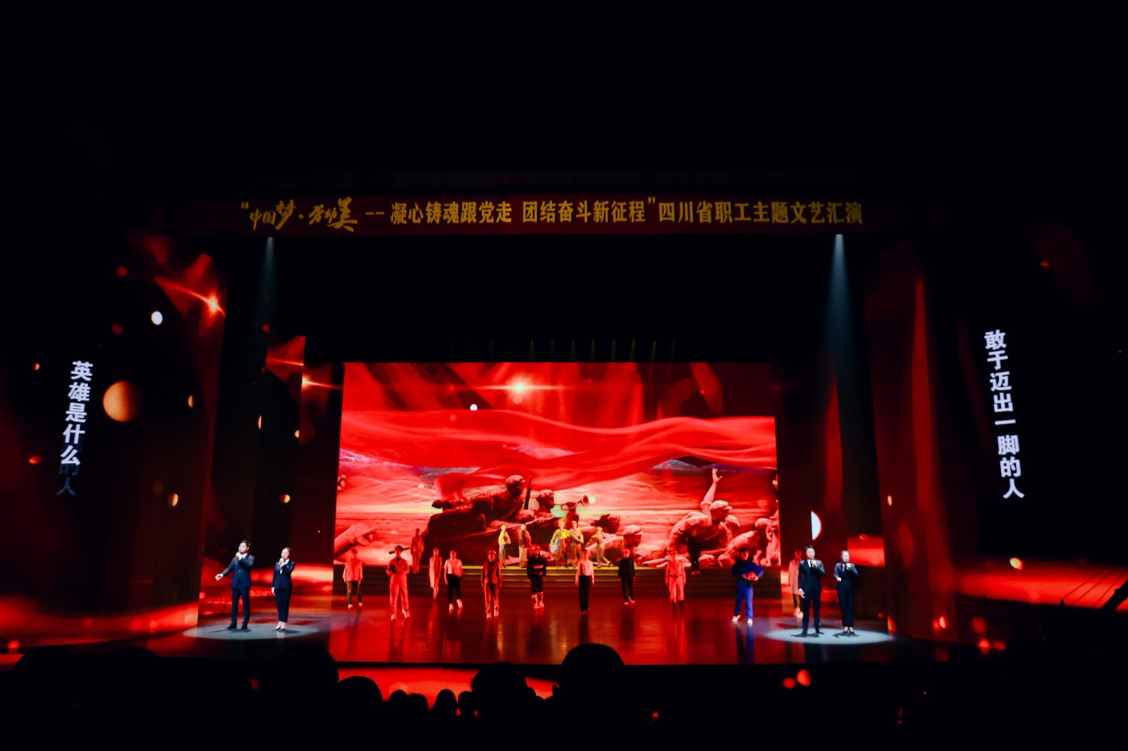 11月22日晚,“中国梦•劳动美——凝心铸魂跟党走 团结奋斗新征程”四川省职工主题文艺汇演在成都华侨城大剧院举行。川投集团工会选送的诵读作品《新时代的英雄》在舞台上精彩亮相。该节目曾荣获四川省第二届职工诵读比赛金奖,本次经过层层选拔,由足球彩票作为主创班底,联合川投信产、资阳口院选送优秀选手共同呈现。