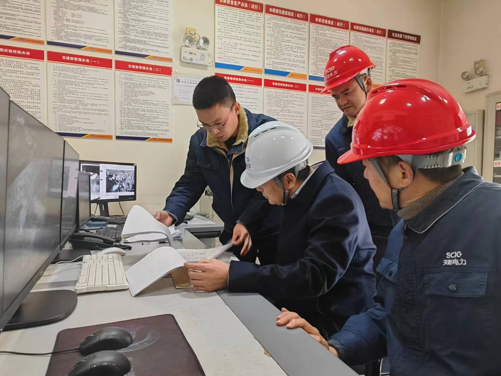 督导检查组一行先后前往公司凤鸣湖水库大坝、回龙沟底格栏栅坝、凤鸣桥电站、官田坝电站,仔细查看了现场安全管理、设备设施运行、安全生产信息化建设等情况,并通过查阅台账、与工作人员座谈交流的方式,检查了公司“安全管理强化年”行动开展情况、安全管理人员培训和持证情况、安全生产资金投入和使用情况、应急体系建设情况、特种设备管理情况、安全责任清单和安全考核追责的落实情况等,并实地查看了员工倒班宿舍住宿条件,关怀解决一线员工工作生活方面的困难和需求。