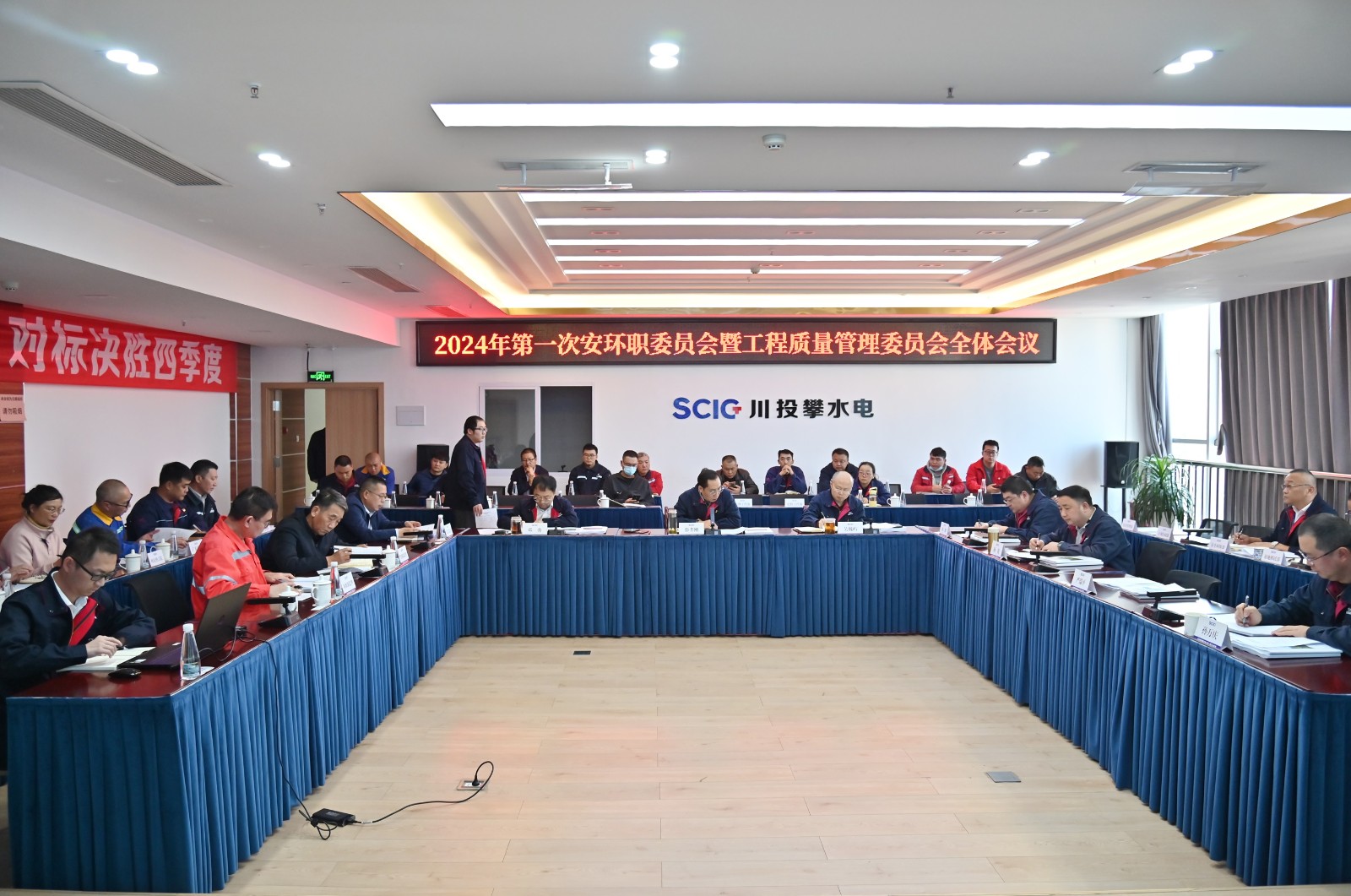 1月15日下午,在新春佳节即将到来之际,公司在2620会议室召开了2024年一季度工程质量管理委员会全体会议,会议由足球彩票副总经理、公司党总支书记、董事长、质委会主任徐孝刚主持,公司党总支副书记、总经理、质委会主任吴巍屿及公司在攀领导出席会议,公司工程管理部、安全环保部、计划合同部、党群工作部,长江设计代表处、各监理部、第三方质量检测单位、各施工单位项目部领导及主管质量负责人共计40余人参加会议。