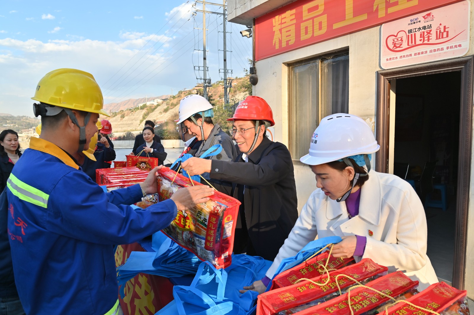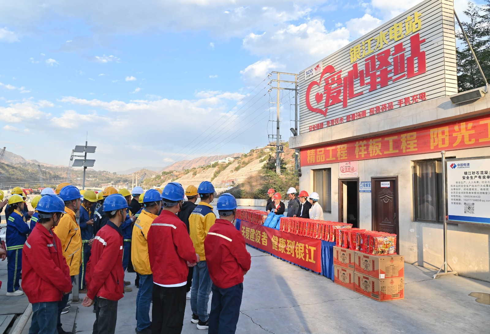 活动首先参观了公司大党建宣传阵地和银江水电站施工现场。在爱心驿站,党员们为来自长江设计院、贵阳院监理部、水电五局项目部、水电七局项目部、广东源天项目部等参建单位的工友发放了健康宣传手册、新春大礼包等慰问物品。田巨龙感慨到银江水电站工程建设速度之快难以令人想象,嘱咐工友们一定要保重身体、注意自身防护,祝福工友们平平安安、健健康康迎接新年的到来。