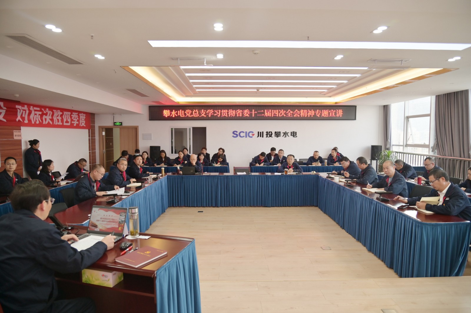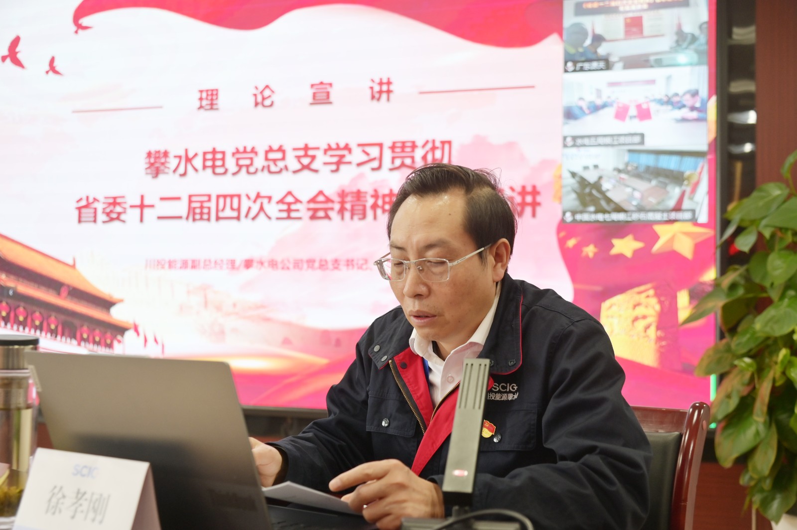 宣讲会上,徐孝刚从深入领会全会主题、深入领会全会精神、推动省委全会决策部署在川投集团落地见效、推动省委全会决策部署在攀水电公司及银江水电站落地见效四个方面进行了系统深入的解读剖析,全体党员干部对新时代新征程推进城乡融合发展的总体要求、工作思路和总体目标有了明确的方向;传达了省国资委党委、川投集团党委和足球彩票 关于贯彻落实省委十二届四次全会精神的意见和要求,着重围绕奋力冲刺银江水电站下闸蓄水目标、落实川投集团托底性帮扶工作和做好攀水电公司对口帮扶村城乡融合工作三个方面进行了深入探讨。