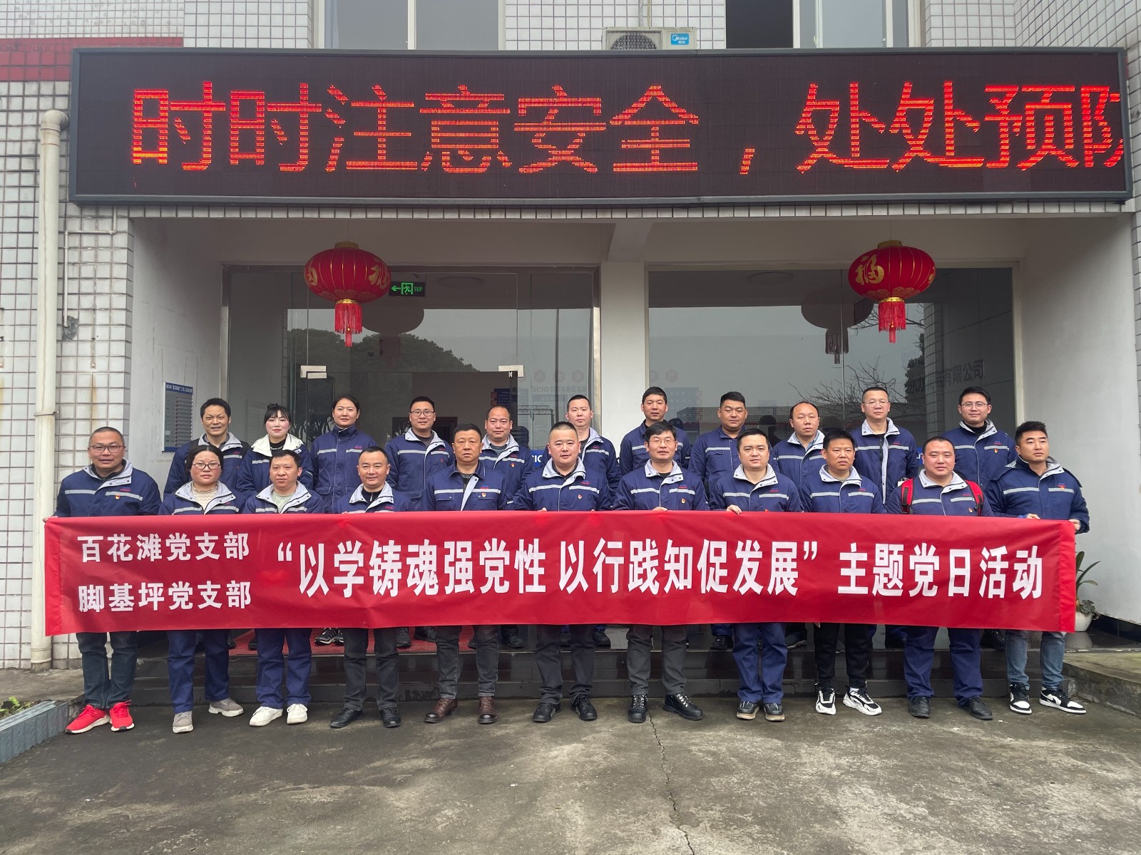为深入学习贯彻落实习近平新时代中国特色社会主义思想、党的二十大精神,2月28日上午,脚基坪党支部赴百花滩党支部联合举办“以学铸魂强党性、以行践知促发展”主题党日活动。本次活动通过现场参观学习、座谈交流,切实将党性锤炼与思想淬炼相结合、理论学习与调查研究相结合、转化成果与推动工作相结合,引导党员干部更加深刻感悟习近平新时代中国特色社会主义思想的真理力量和实践伟力。
