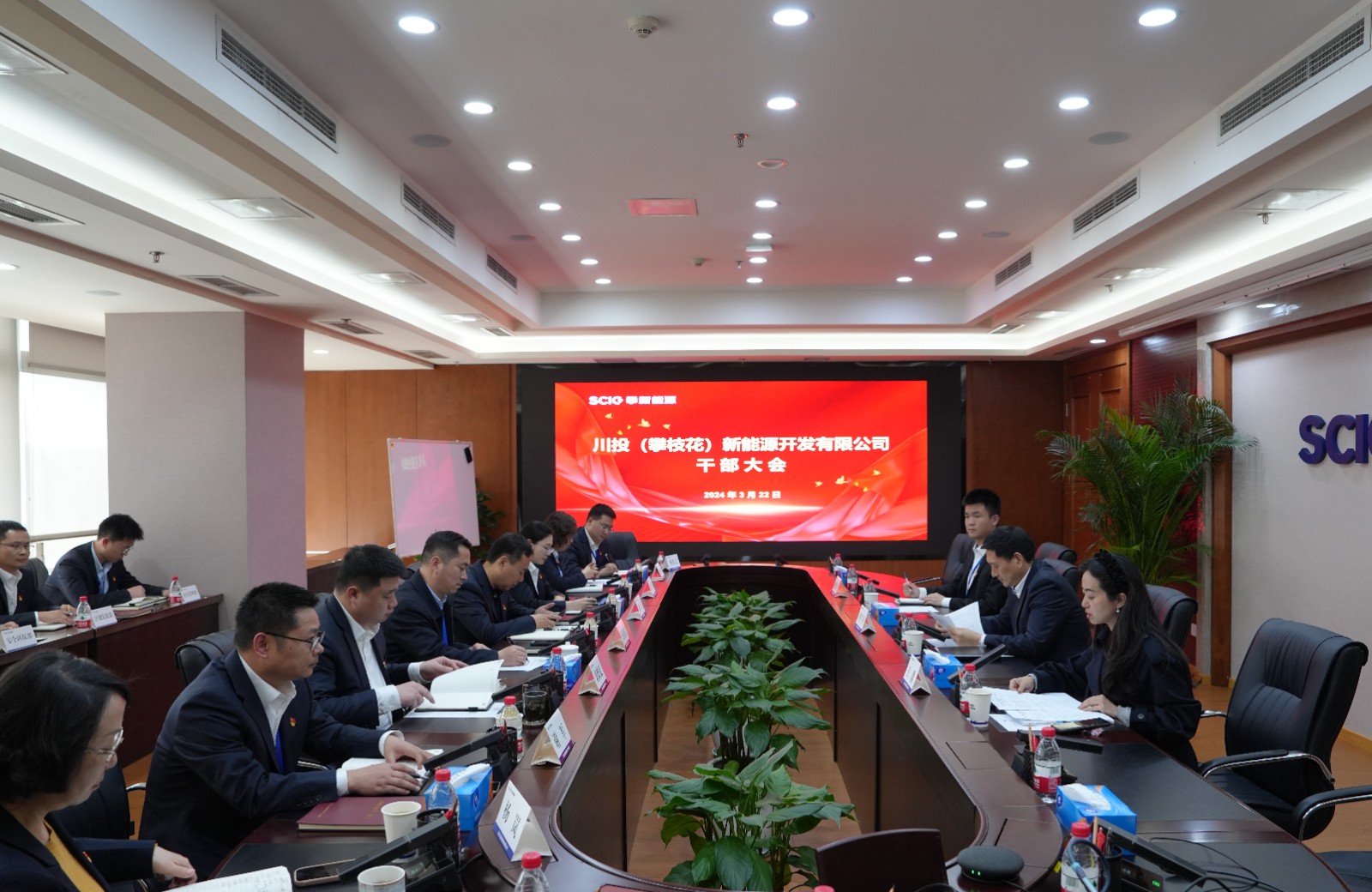 3月22日下午,川投(攀枝花)新能源开发有限公司在川投大厦1508会议室召开干部大会。足球彩票 副书记、工会主席冉兰平出席会议并讲话,总经理助理、党委组织部/人力资源部经理王歆出席并主持会议,攀新能源公司党支部书记、董事长王行仁出席会议。