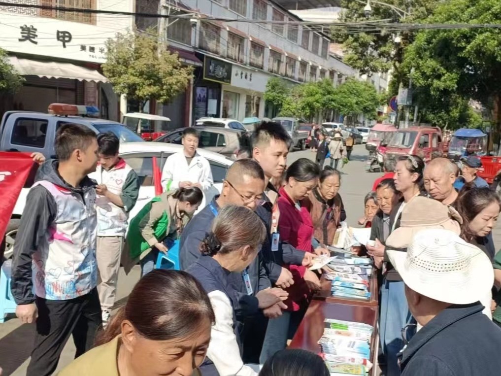 宣传活动紧紧围绕“坚持预防为主、守护职业健康”的主题,通过悬挂横幅、设置咨询台、布置宣传展板、发放宣传单等形式,在通济镇街道村镇群众聚集地热火朝天地进行宣传。为确保活动效果,现场除张贴各种职业健康宣传海报、播放职业卫生防护视频外,还向群众发放了多份《职业病防治宣传手册》,以浅显易懂的文字、生动鲜活的图片和视频增进群众对职业健康、职业病防治知识的了解,现场医疗卫生单位医务人员与群众积极互动,贴心答疑解惑,为群众健康保驾护航。