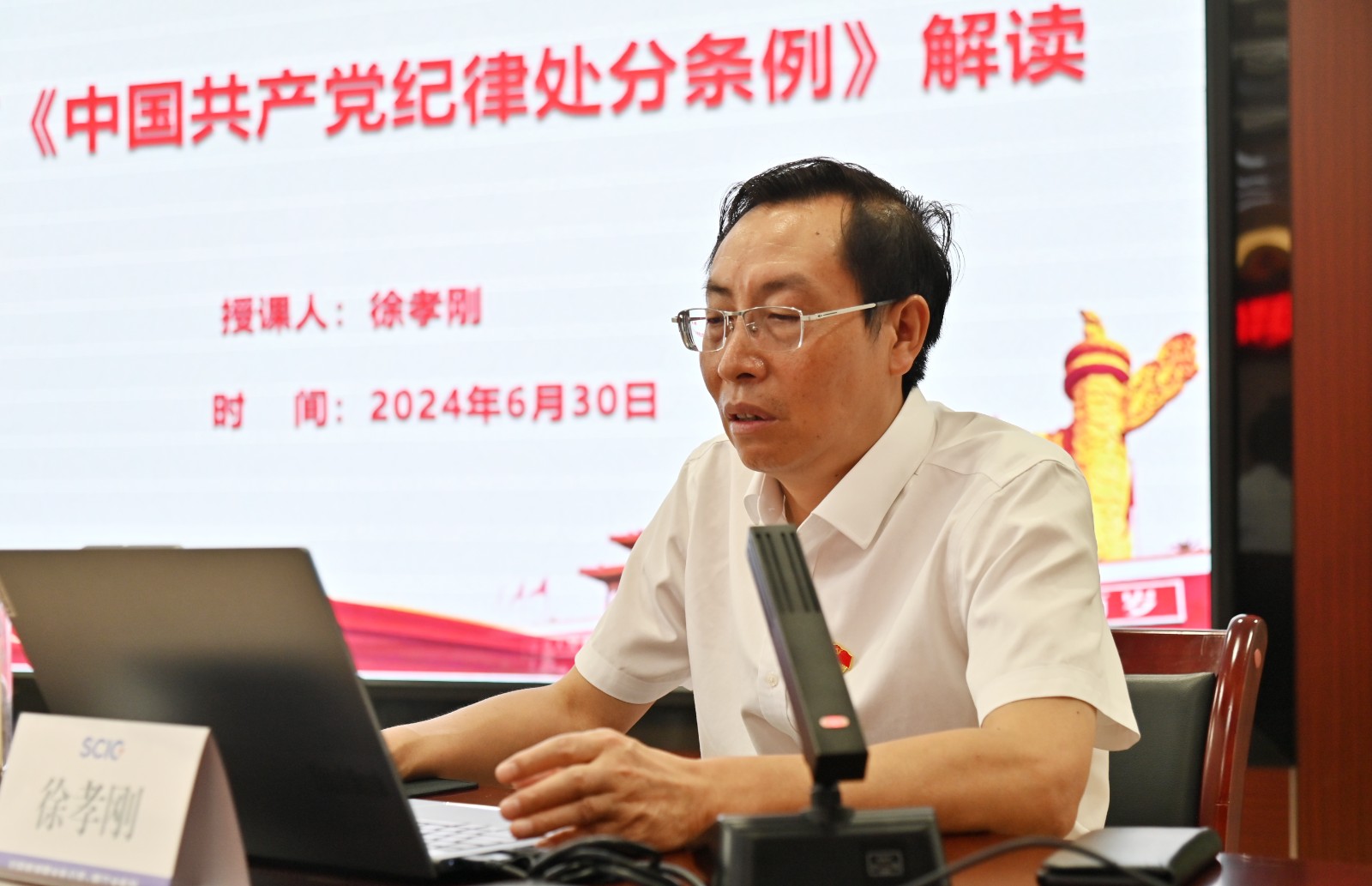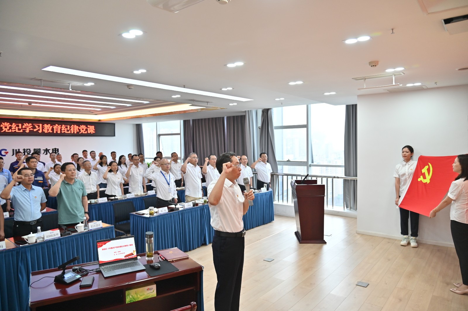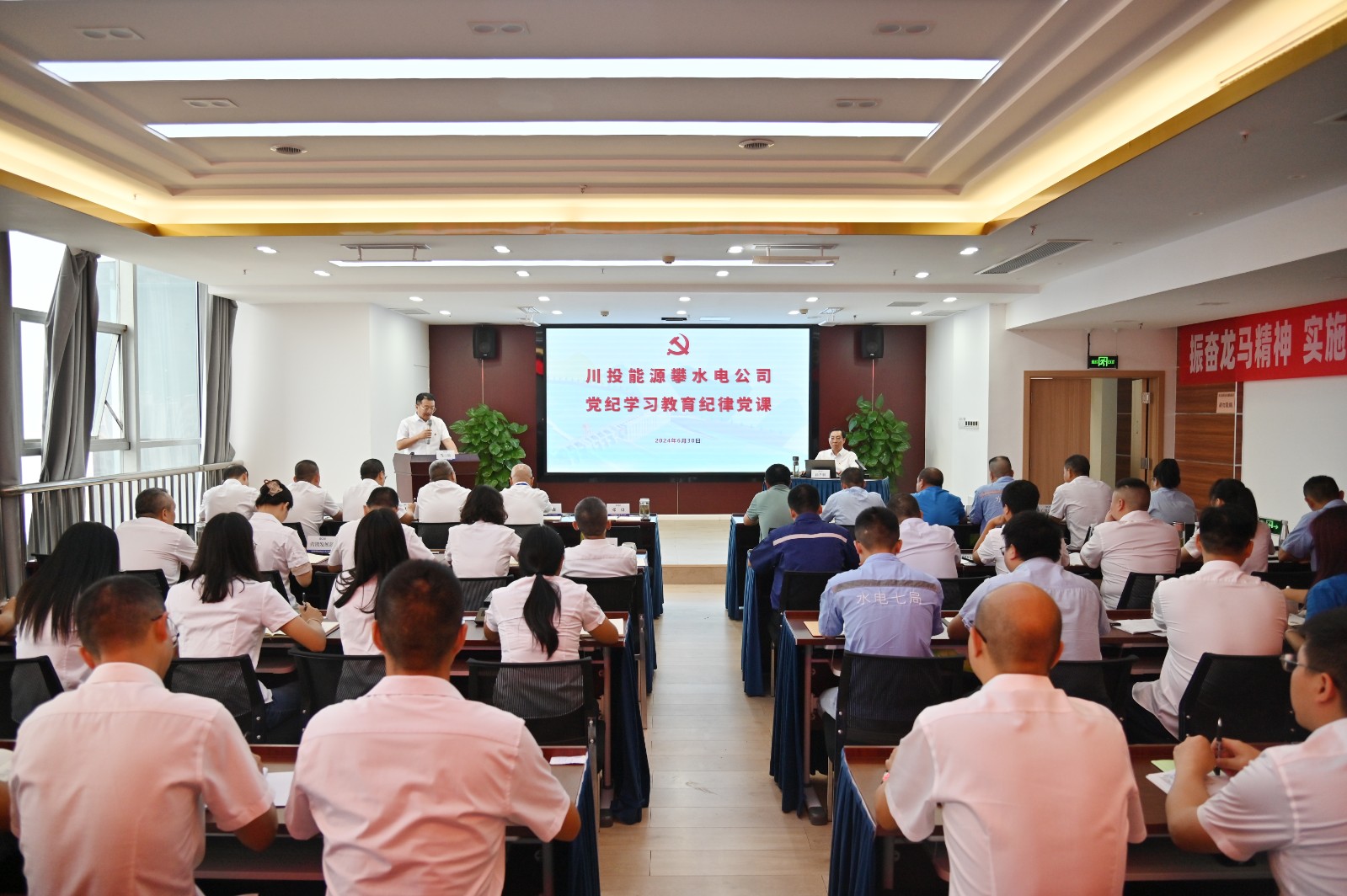 在全党开展党纪学习教育和党的103岁生日来临之际,按照足球彩票 和攀水电党总支的安排部署,6月30日上午,足球彩票副总经理、攀水电公司党总支书记、董事长徐孝刚讲授了党纪学习教育纪律党课并宣讲省委十二届五次全会精神,公司全体员工、参建单位负责人及党员代表共计50余人参加。