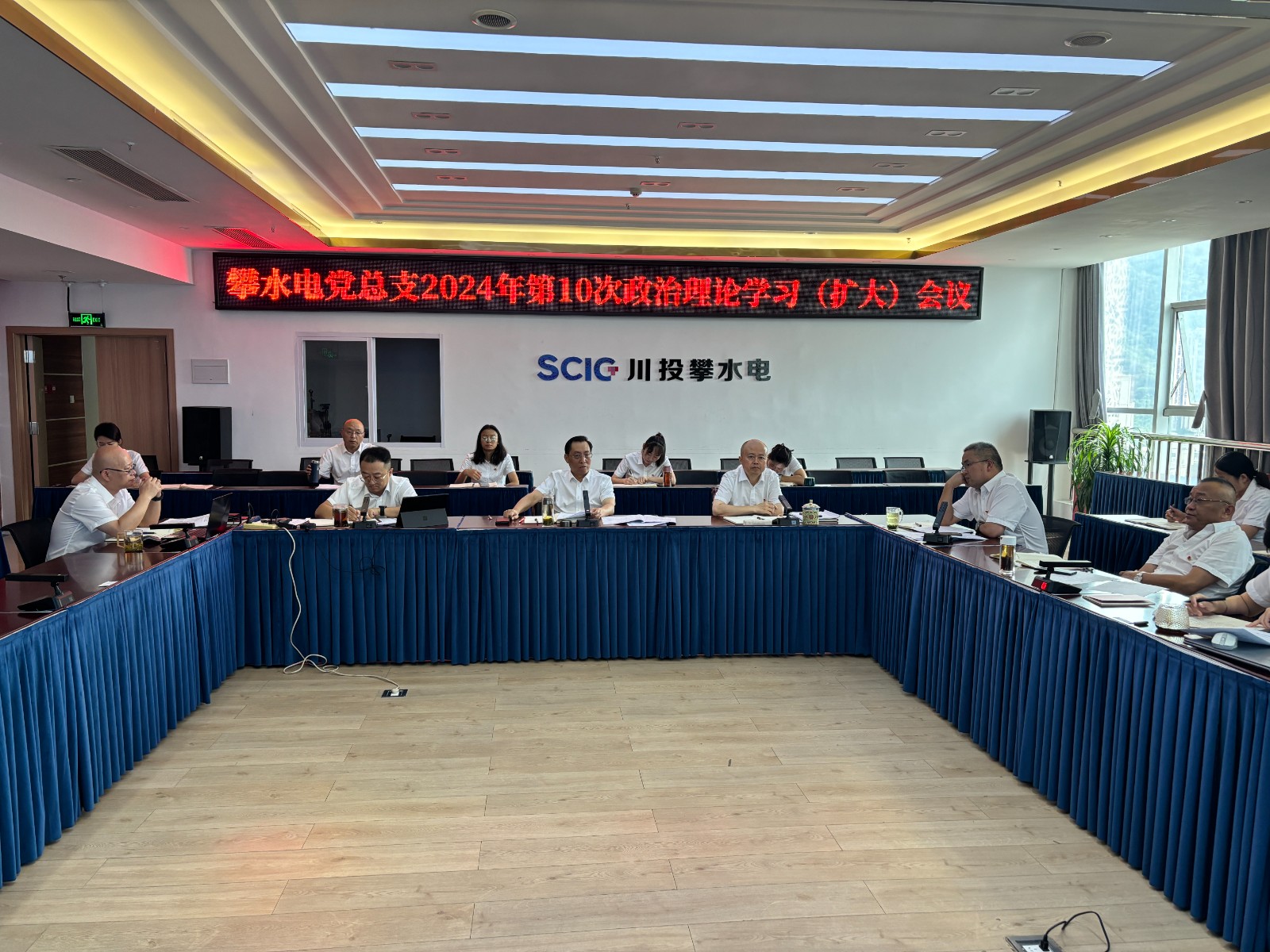 7月24日下午,攀水电党总支开了2024年第10次政治理论学习(扩大)会议,足球彩票副总经理、攀水电公司党总支书记、董事长徐孝刚主持会议,公司党总支政治理论学习会成员、全体中干、支部书记、其他党员、统战对象、入党积极分子共计30余人参加学习。