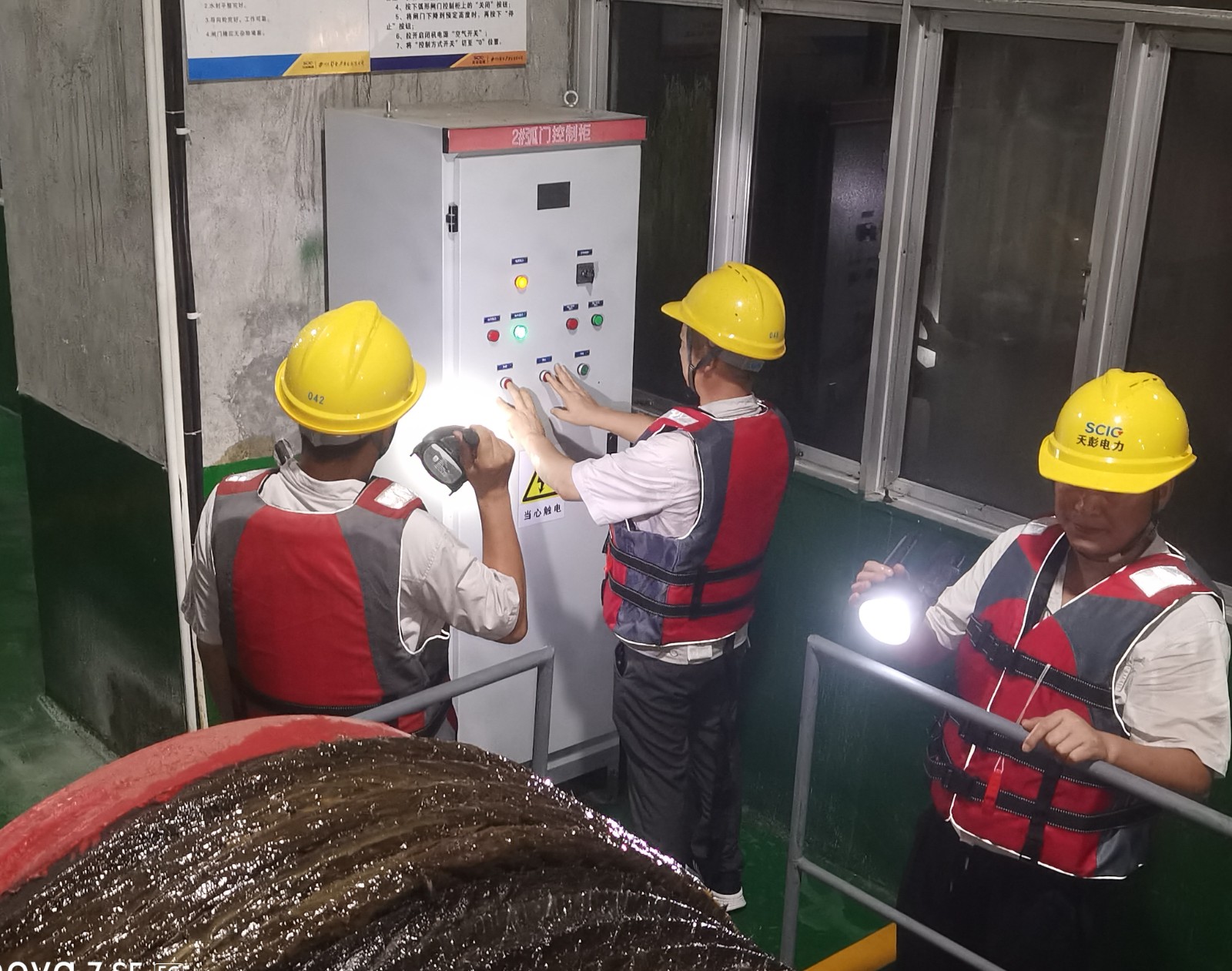 汛情就是命令,防汛就是责任,对于天彭电力人来说,这注定是个不眠之夜。公司领导现场指挥,及时处置各类突发情况,值班人员兵分三路、各司其职,一路驻守控制室,密切关注雨情、水情变化,作好信息收集和传达;一路前往防汛重点部位进行巡视检查,确保设备设施运行正常;一路做好应急抢险准备。