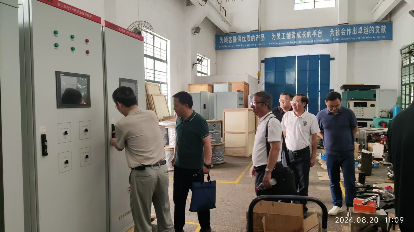在长控所,徐孝刚一行听取了银江水电站第二台水轮发电机组调速器与油压装置的生产进度情况、机械控制系统的装配调试情况、压力油罐和油压装置的生产情况与联调联试时间安排等,现场观看了控制柜的排班接线、机械控制主配部分的装配调试等。徐孝刚对一线装配人员的辛勤工作表示慰问和感谢,同时希望长控所能采取超常规措施,在保质保量的情况下提早完成调速器和油压装置的交付,为银江水电站今年底实现预期目标提供有力支撑。