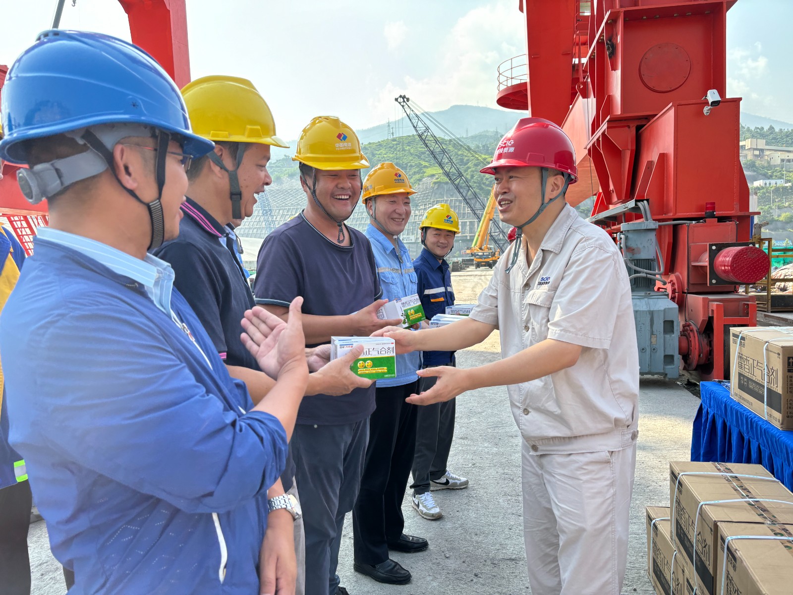 鉴于近期天气炎热,持续高温给一线工人作业带来了巨大挑战,为解决一线工人在施工过程中“饮水难”的问题,公司在银江水电站坝顶、GIS楼、副厂房、鱼道、溢流坝等施工人员密集的部位建立了五处“爱心补水站”,完善送水补水机制,为奋战在烈日下的工友们送去了丝丝凉意与深切关怀,此举为大家解决了实际困难,赢得了工友们的广泛赞誉。