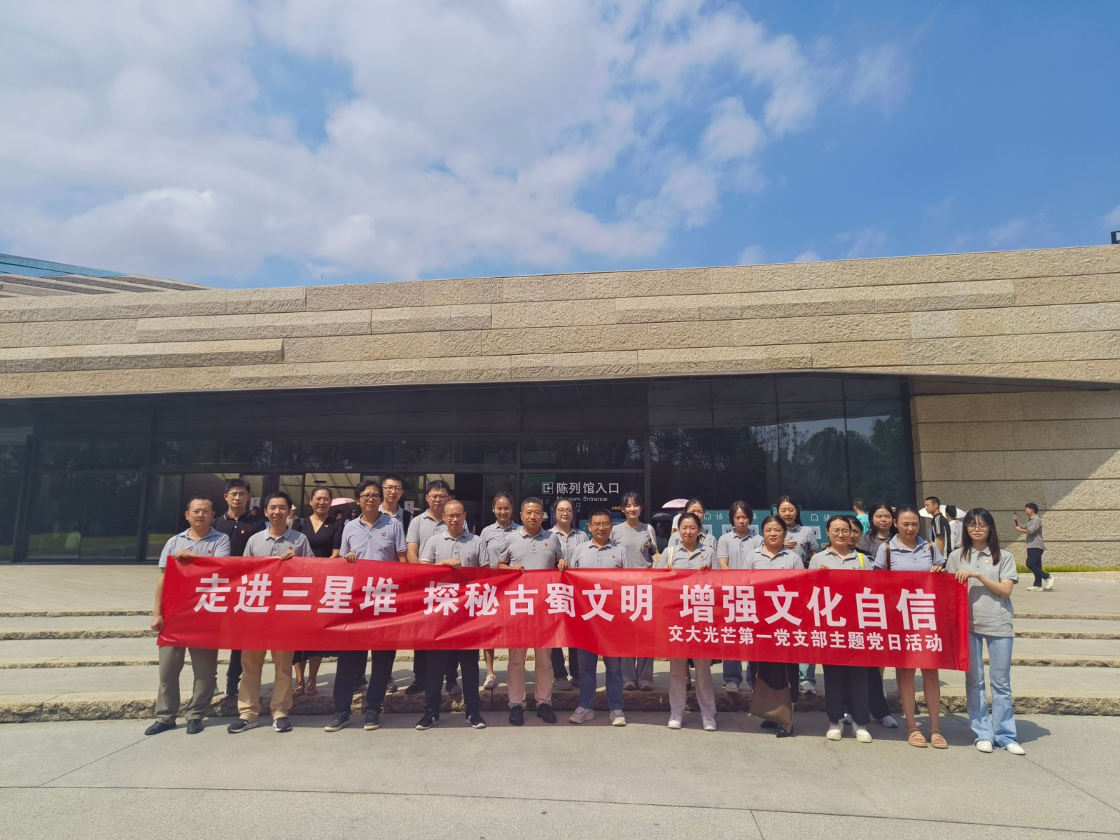 为深入学习习近平新时代中国特色社会主义思想,贯彻落实习近平文化思想和习总书记来川视察重要指示精神,深化对“两个结合”的认识,进一步弘扬传承中华优秀传统文化,增强文化自信,凝聚精神力量,9月11日,交大光芒第一党支部赴广汉三星堆博物馆开展主题党日活动。