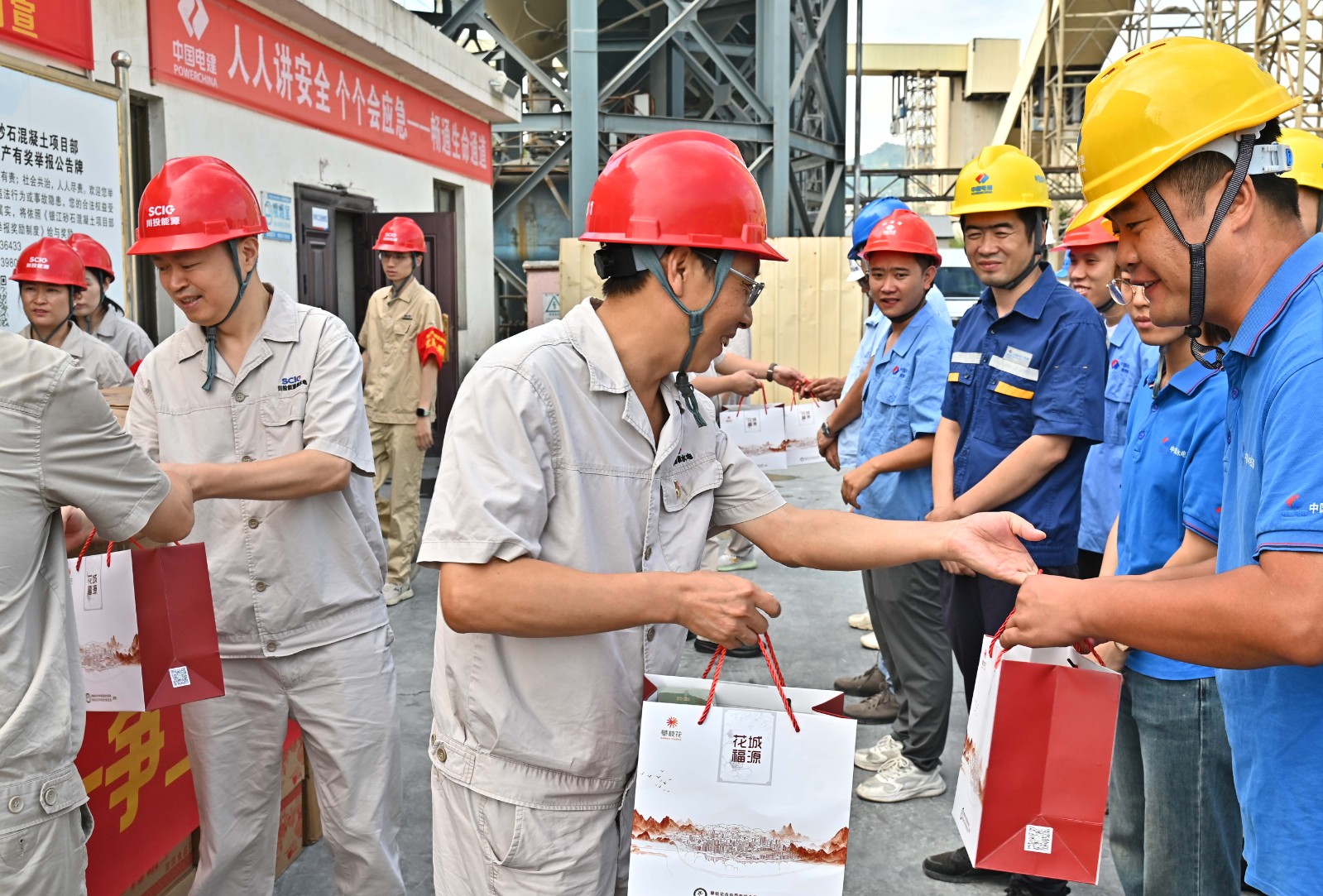 9月17日,正值万家团圆的中秋佳节,而银江水电站工地依旧机器轰鸣,一派热火朝天的繁忙景象。足球彩票副总经理、攀水电公司党总支书记、董事长徐孝刚带领攀水电公司领导班子全体成员来到爱心驿站,为1200余名建设者送上香甜的月饼和清香的凉茶,向他们表达深切慰问与崇高敬意。
