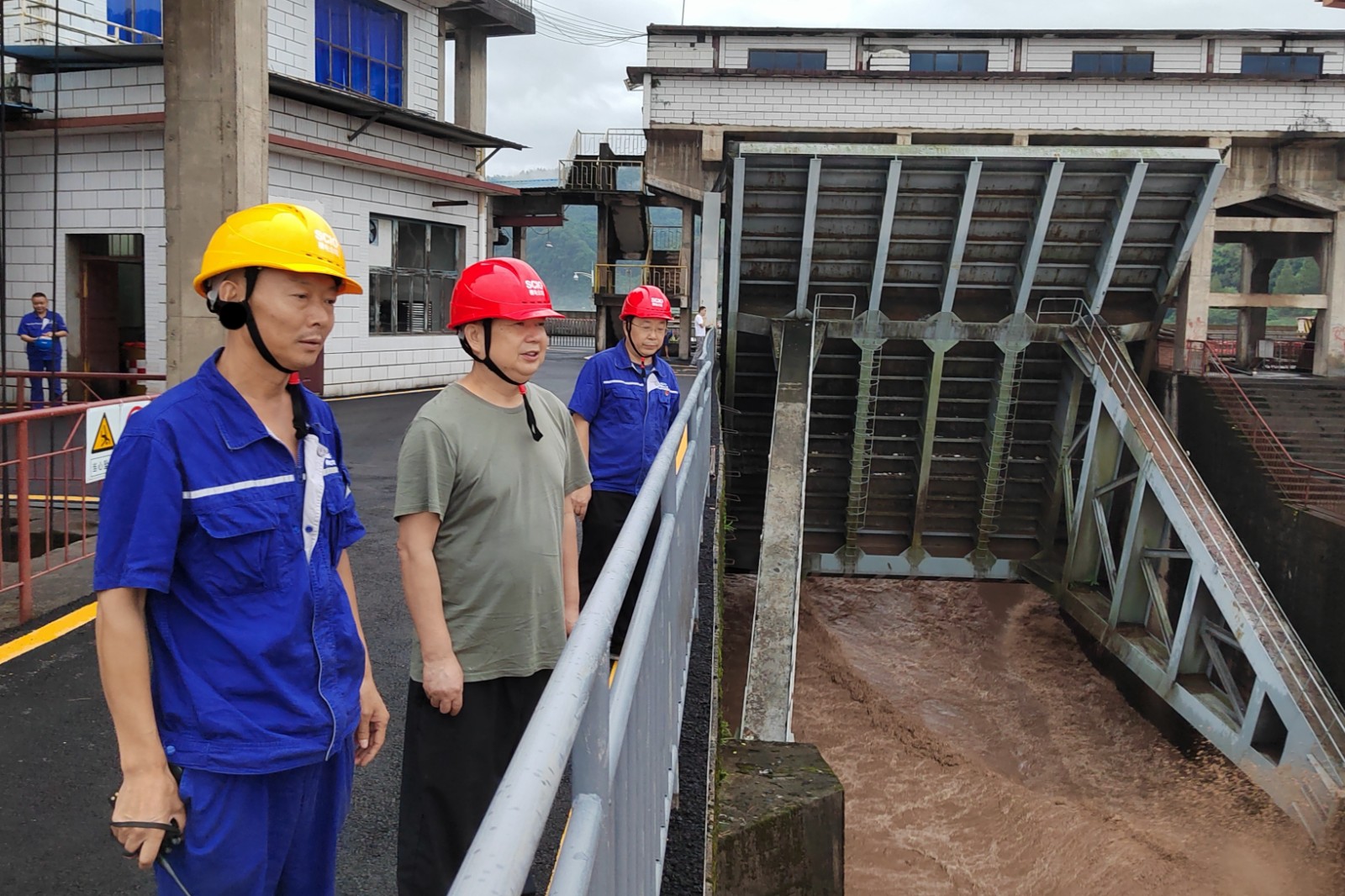 槽渔滩公司党委书记、董事长何光富,副总经理蒋玉兵带领相关部门负责人赶赴电厂,对电厂的设备设施和防洪工作进行检查,现场听取电厂负责人关于防汛工作的安排、部署及落实情况汇报。到库区对竹菁坝、董河河堤进行认真检查,详细了解水库区域实情。