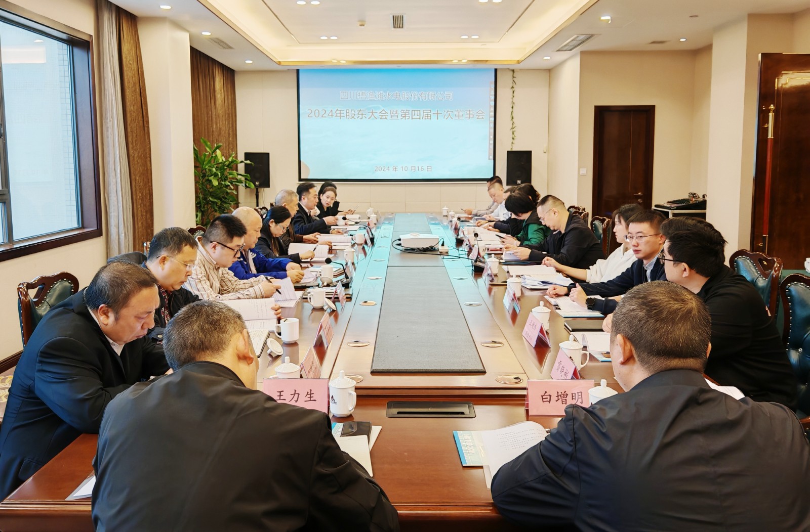 10月16日,槽渔滩公司2024年度股东大会暨第四届第十次董事会在洪雅召开。各股东单位和个人股代表、公司董事出席会议,公司监事、经营班子成员、相关部门负责人列席会议。