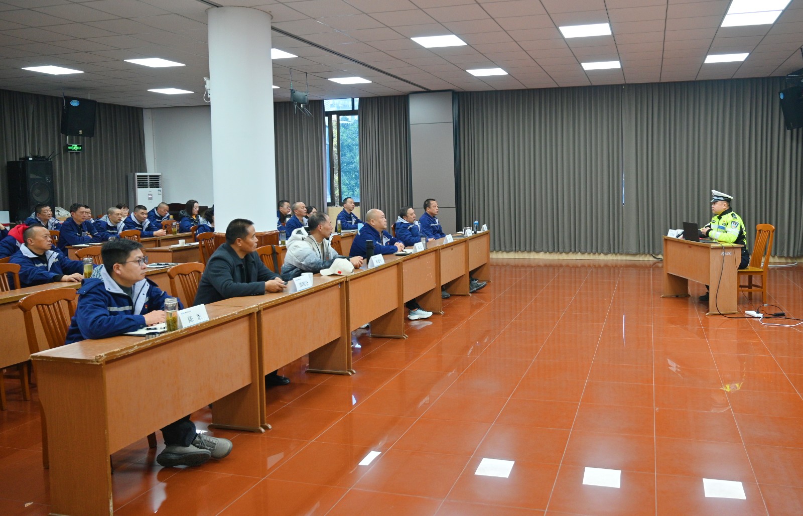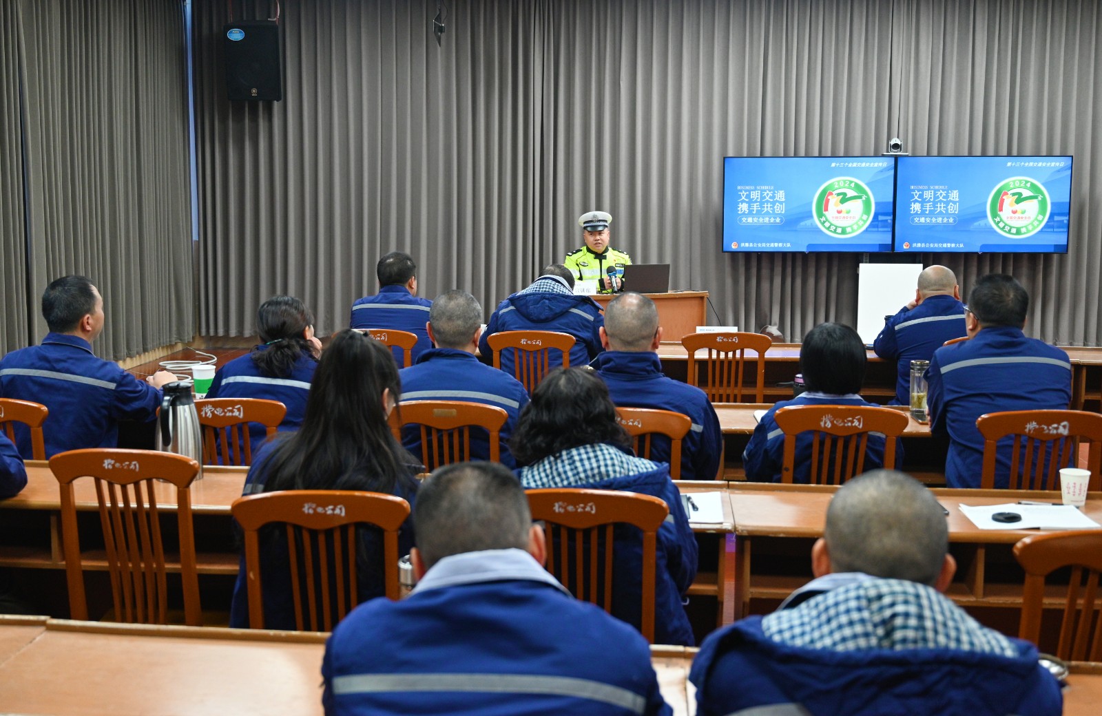 为进一步强化员工的安全意识,提升员工自觉遵守交通规则的能动性,有效降低交通事故的风险,在“全国交通安全日”来临之际,槽渔滩公司邀请洪雅县交通安全协会主席罗德军、洪雅县交通警察大队警官贾龙到公司开展“文明出行 携手共创”交通安全法律法规知识宣传培训活动。活动由公司副总经理雷晓彬主持,公司在家班子成员、中层管理人员和全体驾驶员共计四十余人参加。
