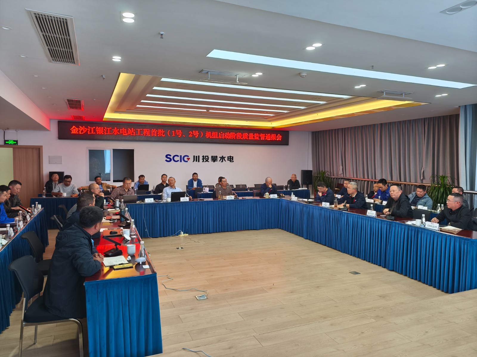 专家组抵达现场后,立即安排质量监督工作,在足球彩票副总经理、攀水电公司党总支书记、董事长徐孝刚,攀水电公司党总支副书记、总经理吴巍屿及各参建单位相关负责人的陪同下,深入施工一线,对施工现场溢流坝泄洪孔和电站厂房进出水口闸门使用及运行情况,1号、2号机组及副厂房公用设备系统安装和调试情况,首批机组启动形象面貌完成情况等进行了详细检查,并在现场与大家初步交换了意见。结合现场检查情况,组织对各参建单位相关内业资料进行检查,形成了质量监督意见。在进行多次检查和交流后,向方伟在攀水电公司2620会议室主持召开了银江水电站首批(1号、2号)机组启动阶段质量监督检查通报会,攀水电公司主要领导、工程管理部、安全环保部负责人及各参建单位负责人共40余人参加会议。专家组与各参建单位进行了充分讨论并交换意见,形成了银江水电站首批(1号、2号)机组启动阶段质量监督报告。