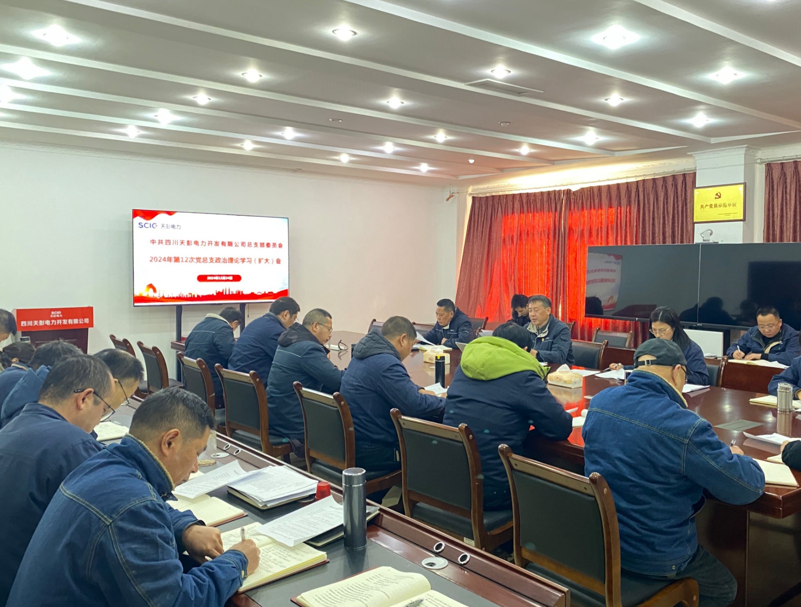 近日,天彭电力公司召开2024年第12次党总支政治理论学习(扩大)会议,公司党总支书记、执行董事、总经理刘红兵主持会议,公司领导班子、党员及关键岗位人员参加会议。